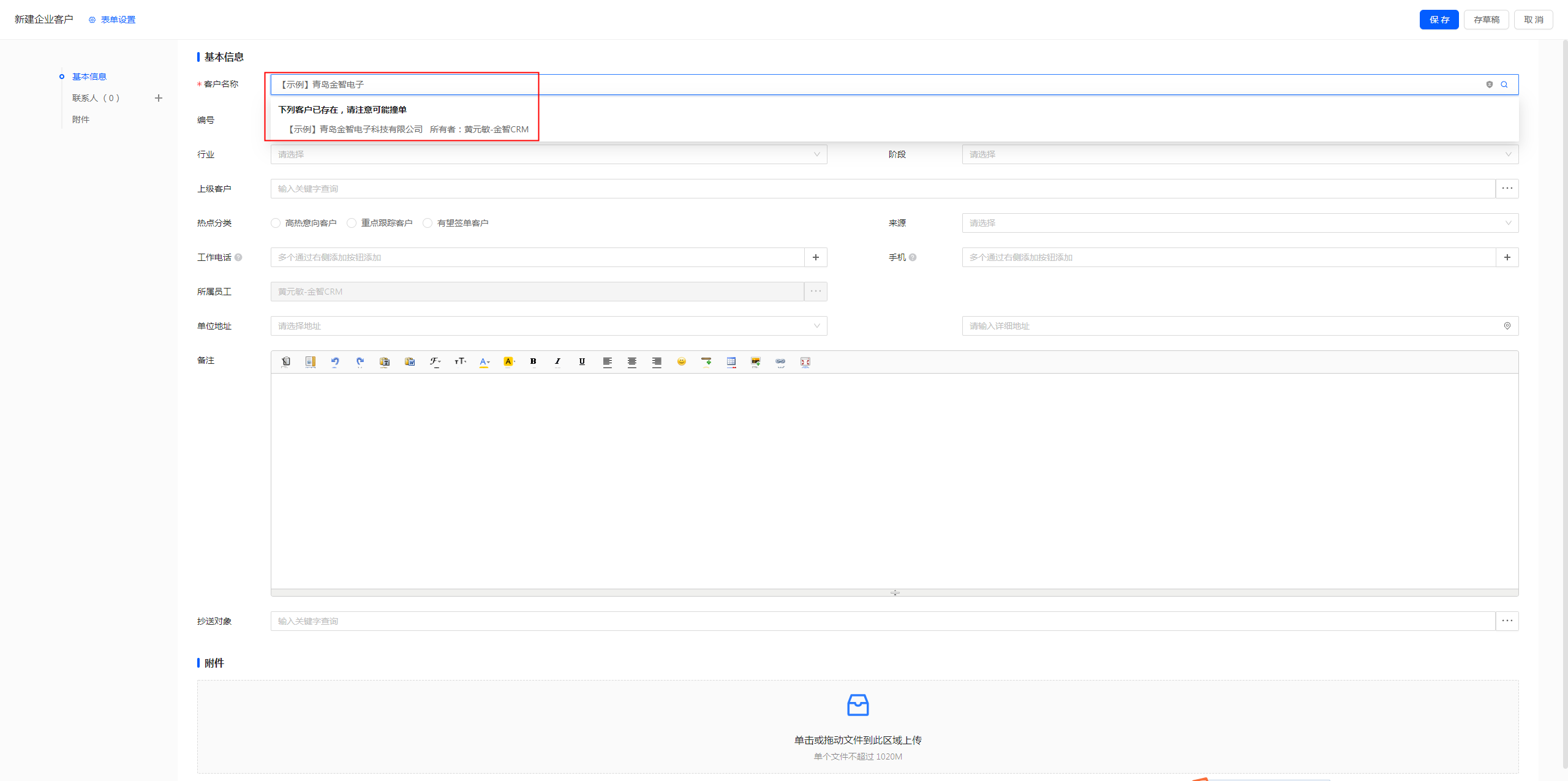 对于撞单客户,系统会给与提示,防止业务跟单重复。
