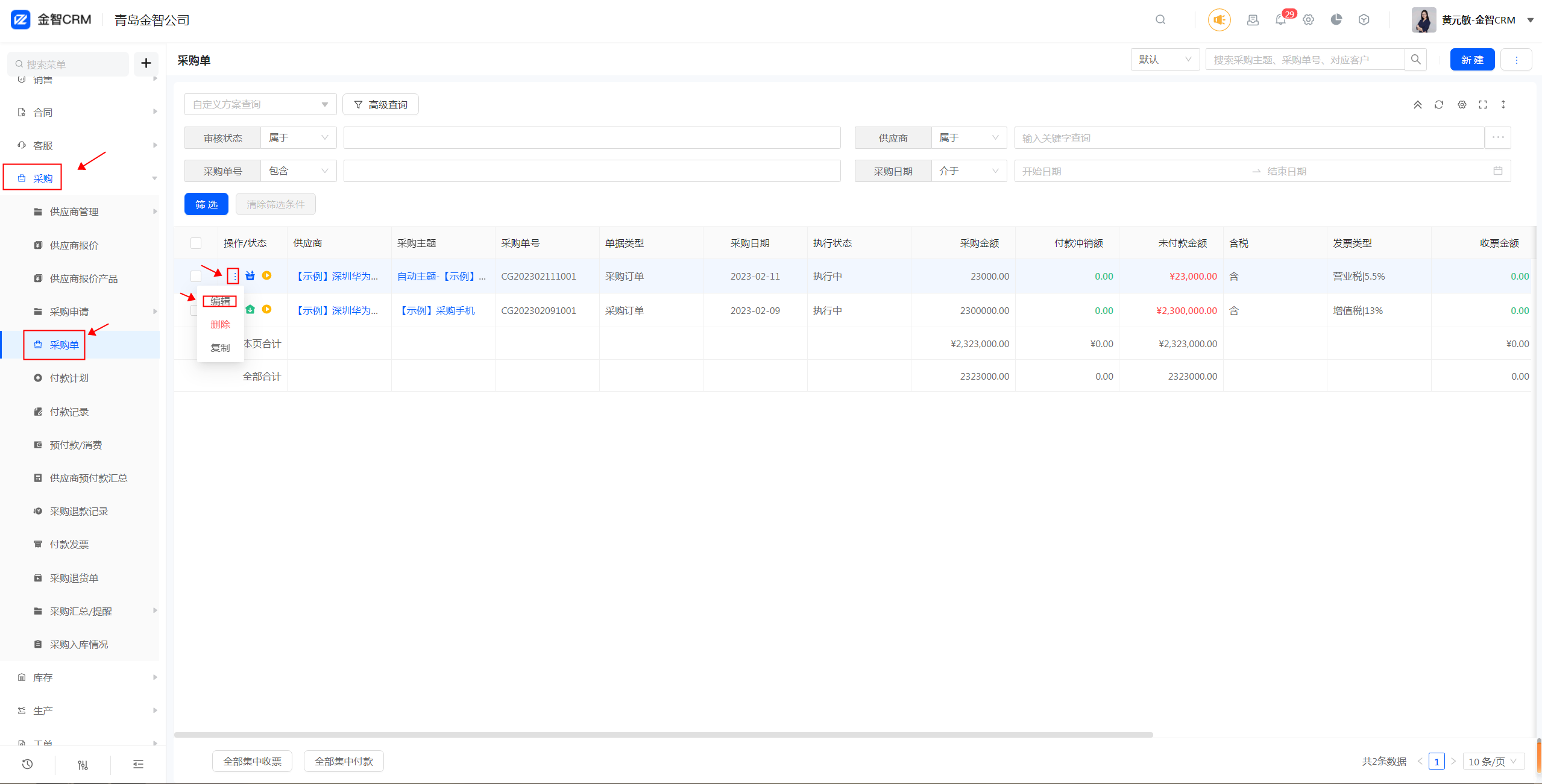只有完成入库的采购单,才可以进行退货;没有入库的产品需要退的,直接修改采购单即可。