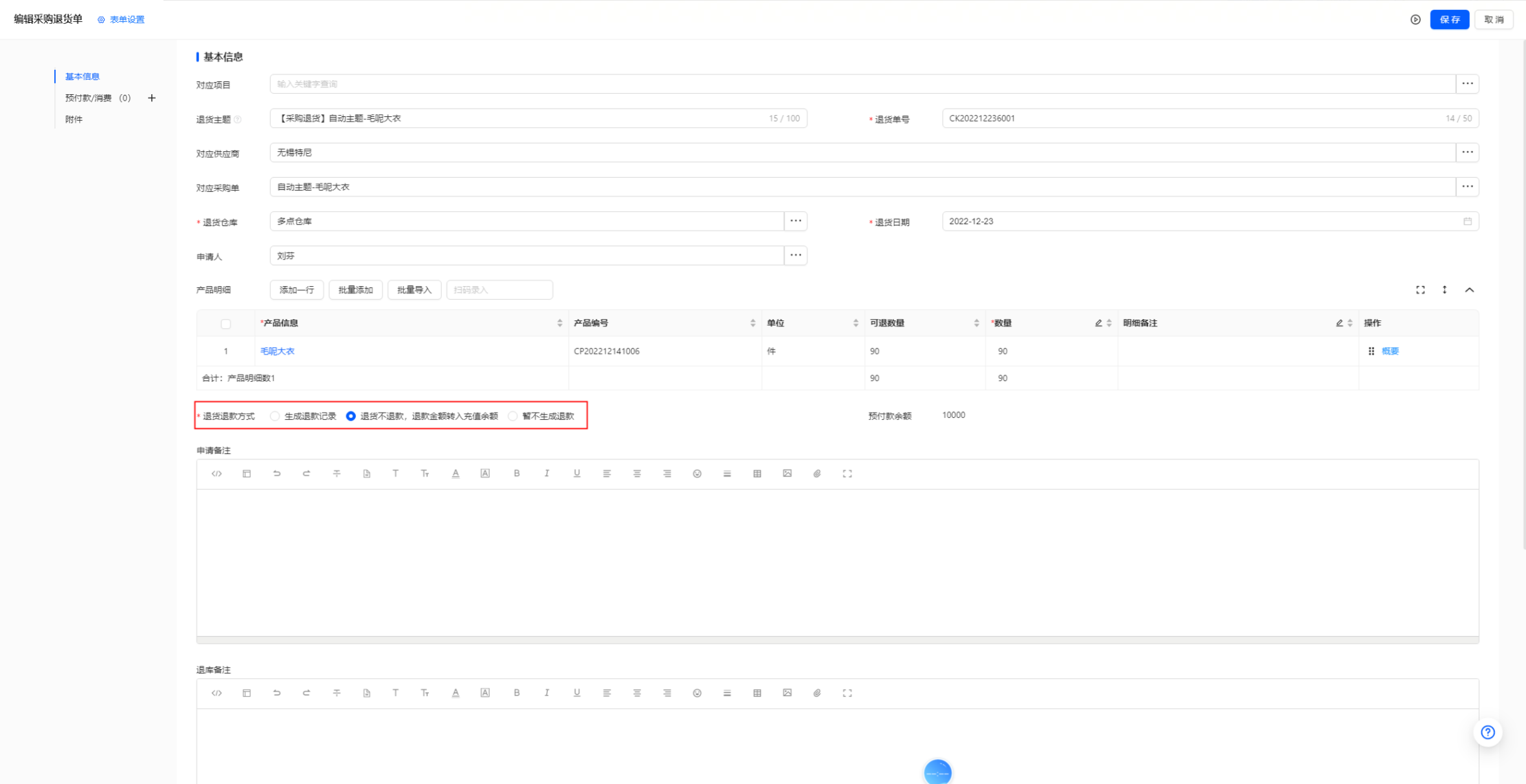 采购退货单的申请