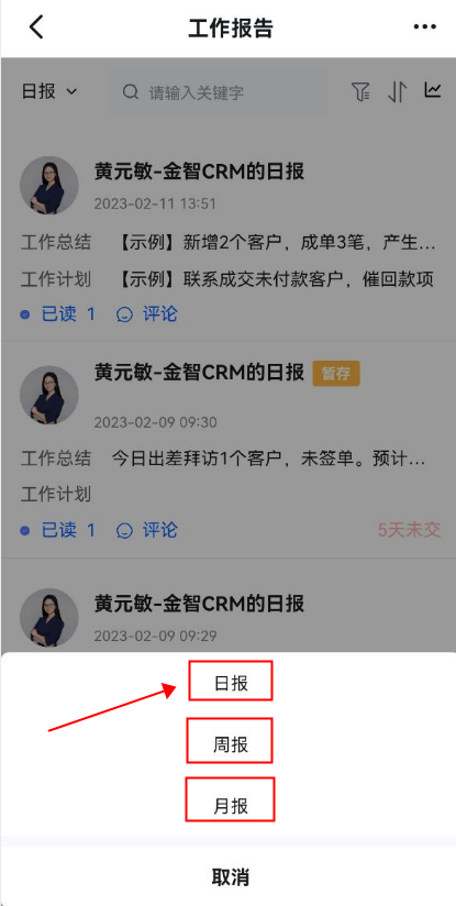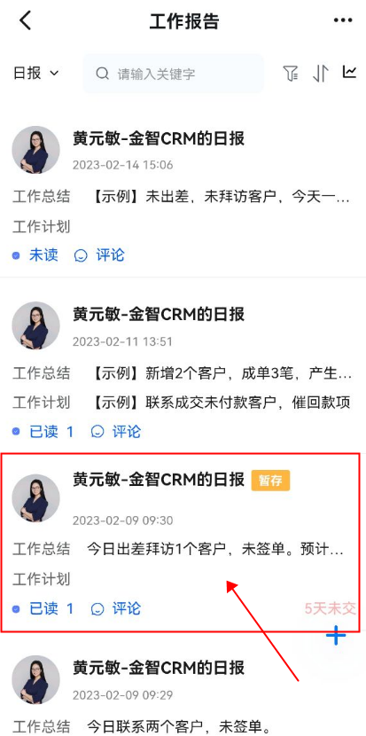 员工可以通过手机端添加日报、周报、月报,对领导汇报工作,有时所有工作并未完成,只是记录一段时间的工作报告,比如上午12点写一下上午的日报,下午再写一点,等晚上7点在提交,此时需要用到暂存功能。