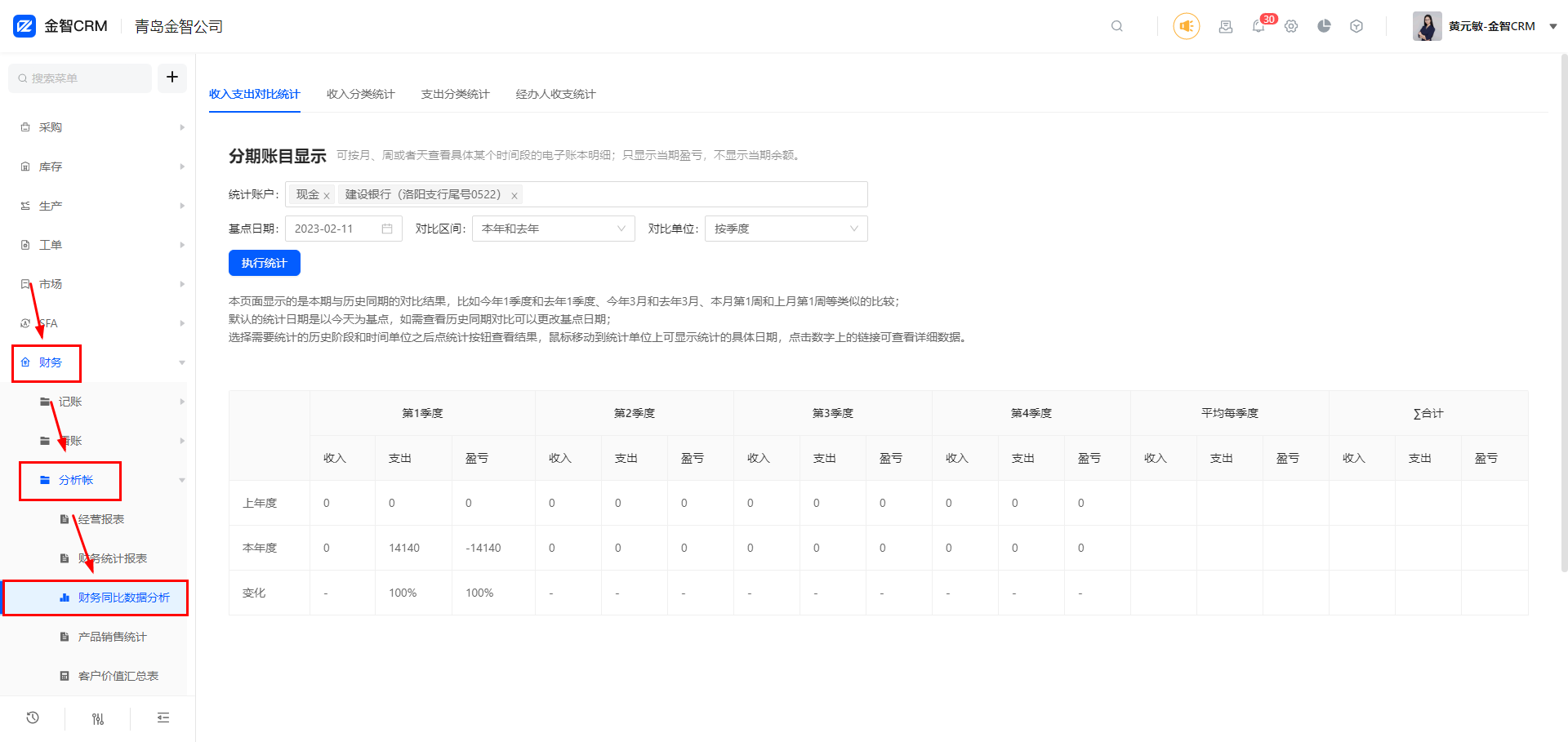 PC端:【财务】-【分析帐】-【财务同比数据分析】