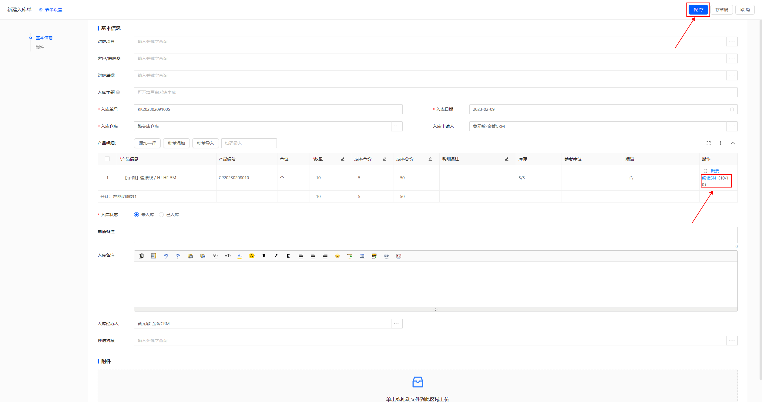 PC端:【库存】-【入库单】-右上角【新建】-填写产品明细之后,在明细列最后一列点击【编辑SN】-支持批量生成(有规律)、批量填写(支持复制粘贴)或者批量导入(以表格形式导入)三种方式。
