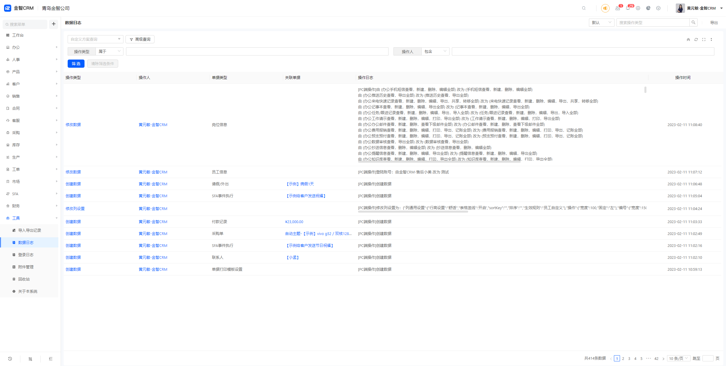 注意:数据日志自动生成,所有人(包括超级管理员)都无法更改、删除、清空。