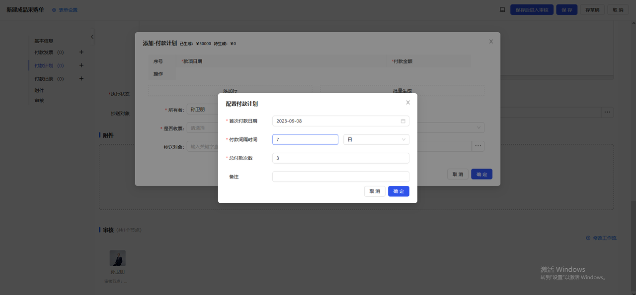 (2)采购-付款计划,增加批量生成快捷方式,方便用户对于有规律性的多期回款计划一次完成。