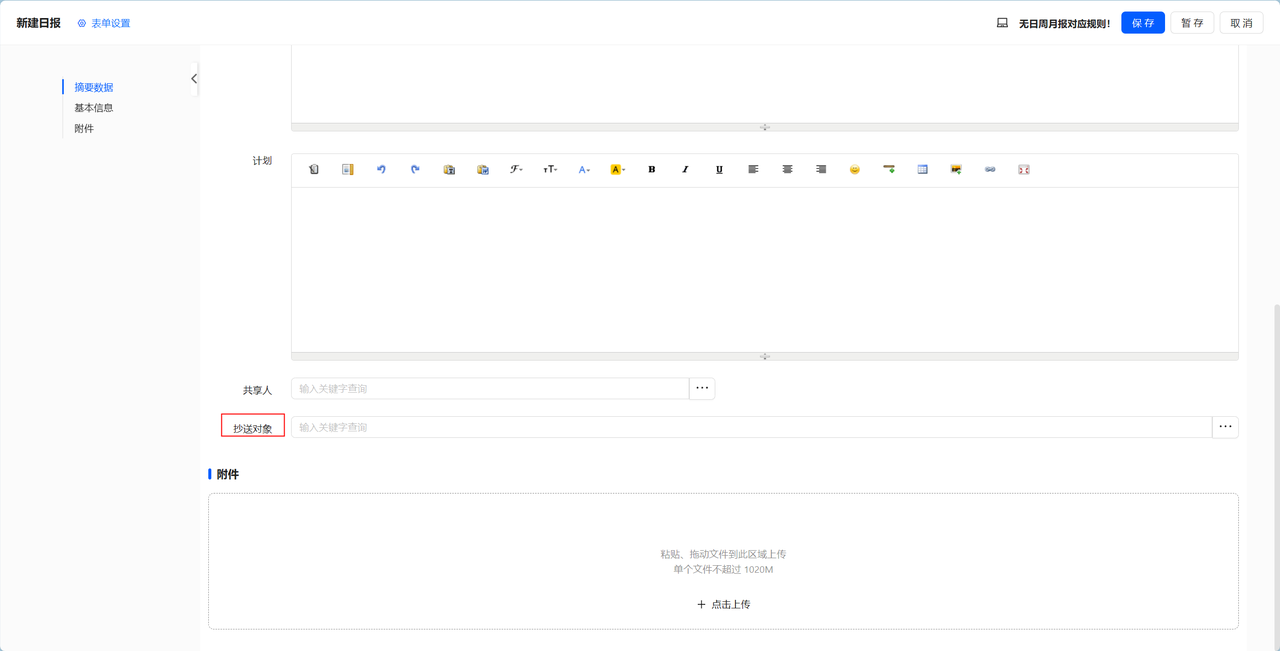 (3)日周月报新建增加抄送对象,保存后,自动推送消息给抄送对象。