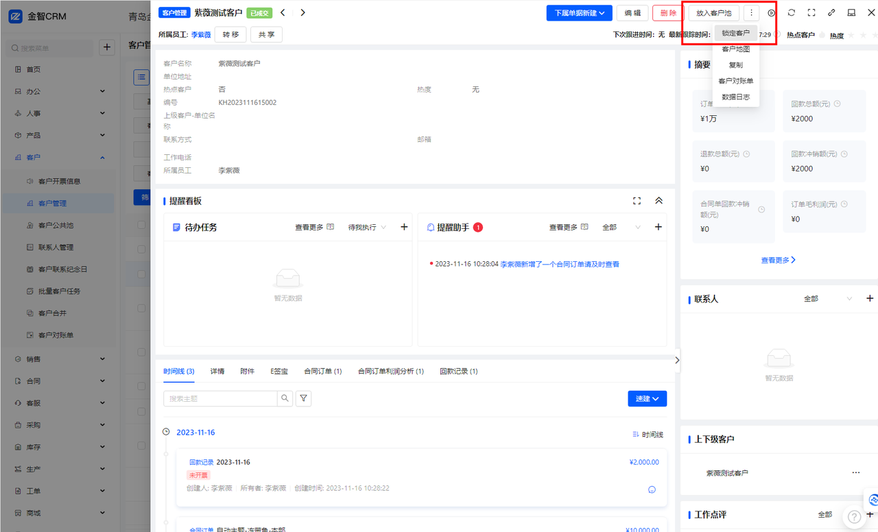 客户列表页面,增加排序功能,用户可按照合同总金额 、已回款金额、 退货金额以及未回款总额进行排序,方便梳理客户情况。