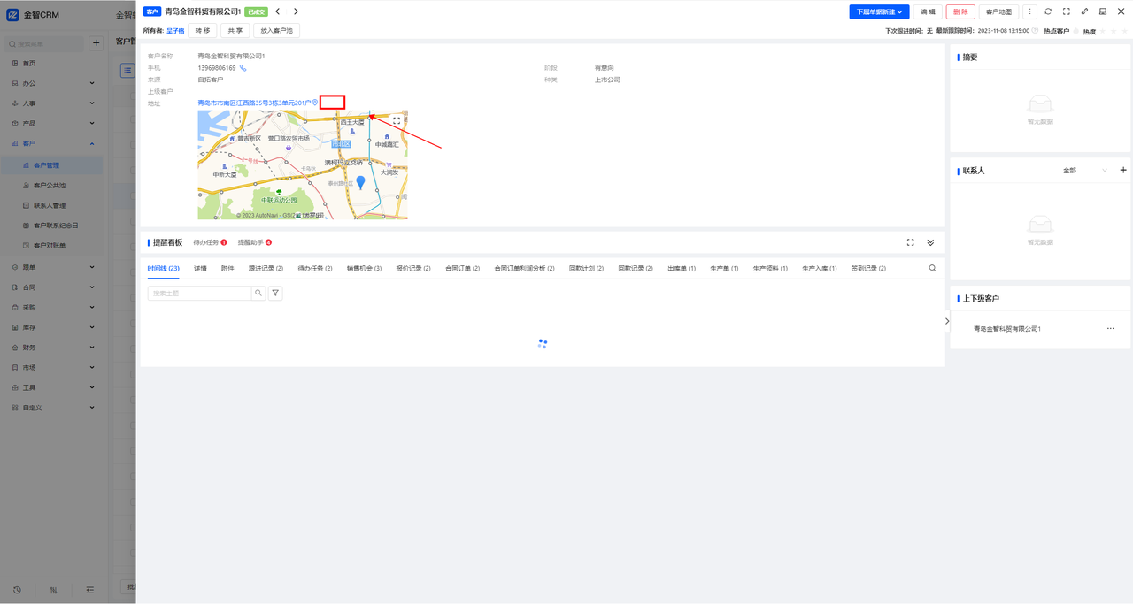 查看单据的视图中,地址类字段优化,以客户视图为例: