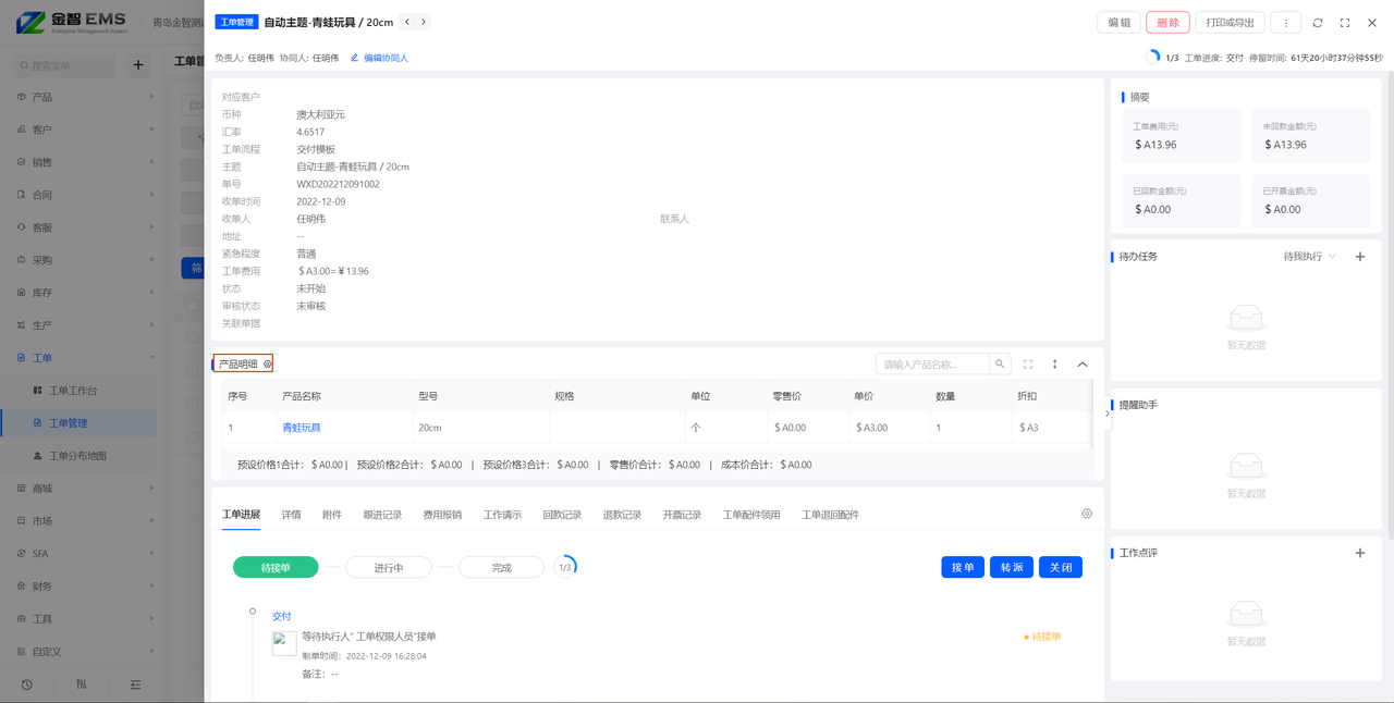 例如:出库单-产品明细中添加了数字型字段 同时设置了计算公式,新建出库单的产品明细则按照此计算公式计算;但是注意,涉及到单据流转的产品明细,以流转读取数据为准,不触发此计算公式,例如合同订单转出库单,出库单的产品明细以读取的合同订单为准,不触发计算公式。