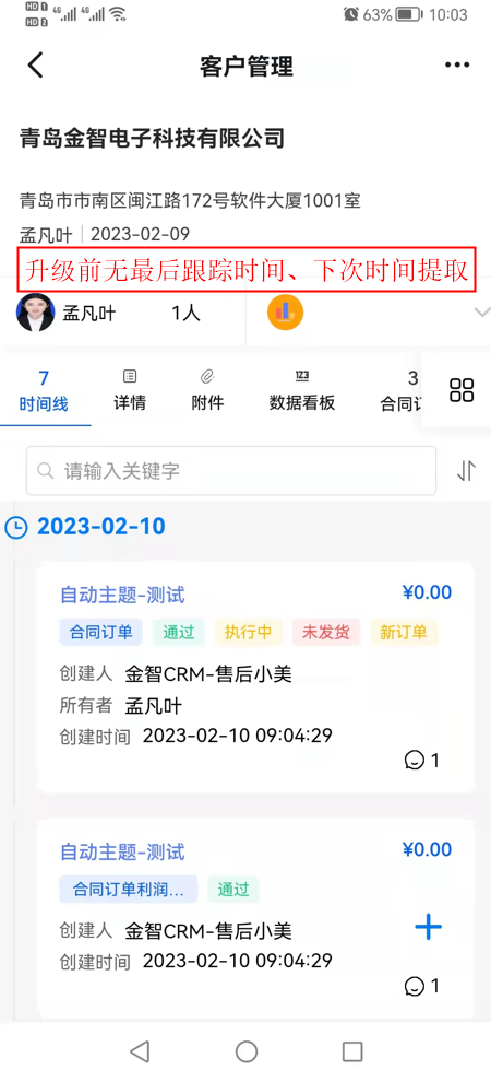 (1)客户视图等视图,查看跟进记录的卡片模式下,信息过多的增加展开按钮,展开后可以查看跟进主题的全部信息;