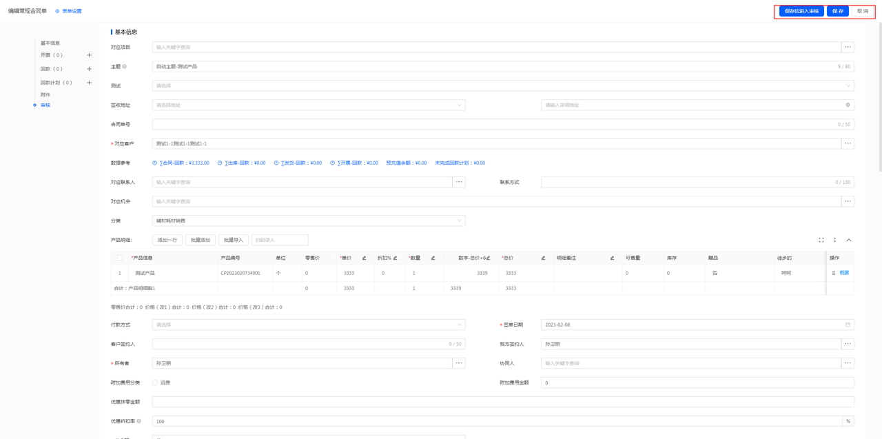 (1)未提交审核的单据,点击编辑时,右上角只需要出现【保存后进入审核】、【保存】、【取消】,不需要出现【撤回审核】按钮;