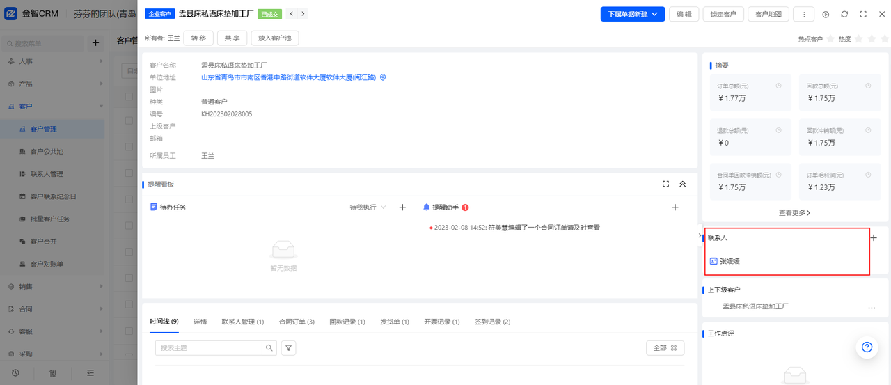 (2)客户视图,跟进记录顶部增加快捷的跟单分类选项,可以快速切换查询跟进记录,右侧有跟进联系人筛选切换;