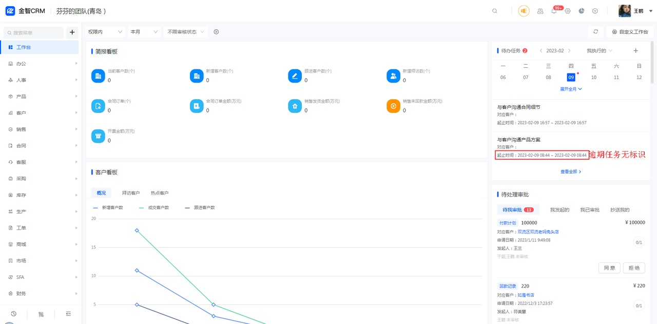 (4)大视图(例如客户视图)的提醒助手右侧,增加选项“全部、与我相关、未读提醒、未到期提醒”,支持切换查看。