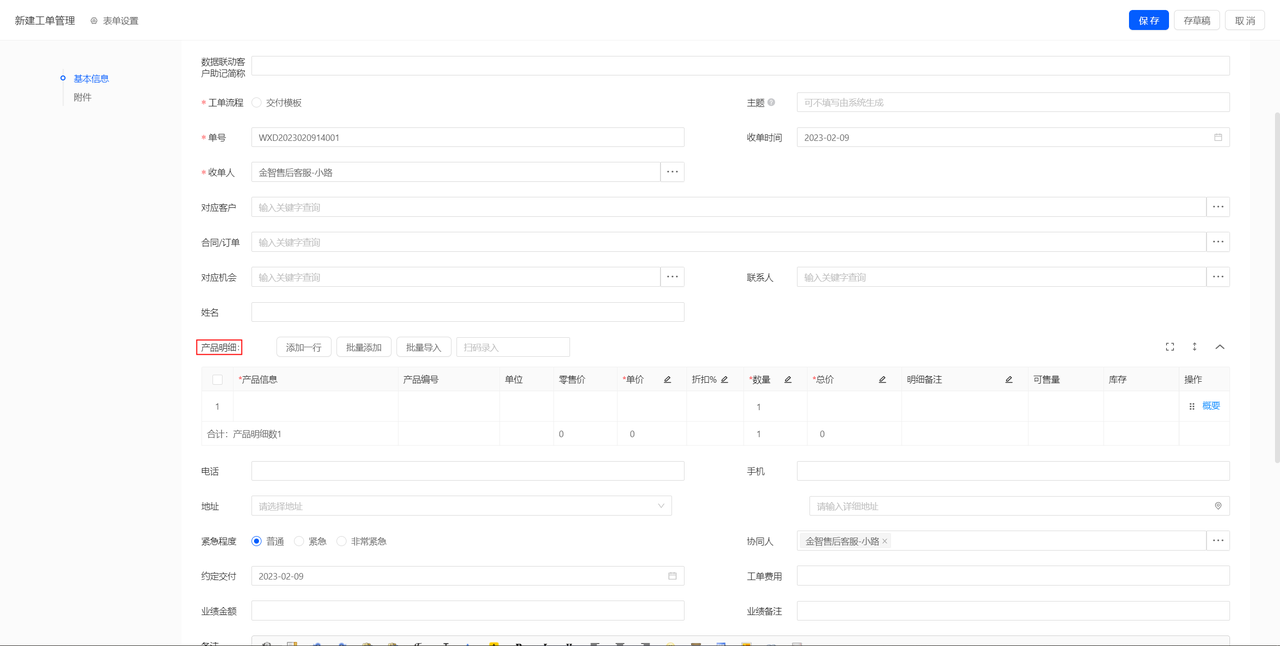 工单的表单设置
