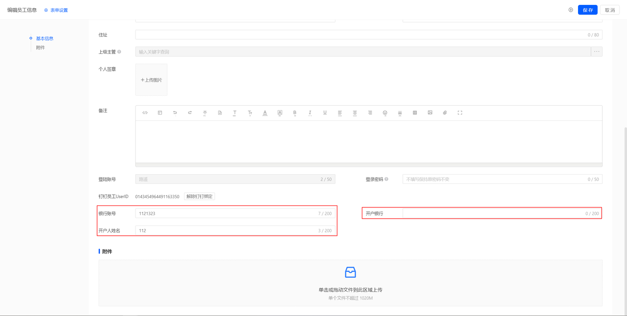 员工信息增加付款账号信息字段,当新建工资单明细时,自动提取。满足工资付款参考付款银行账号付款的需求。