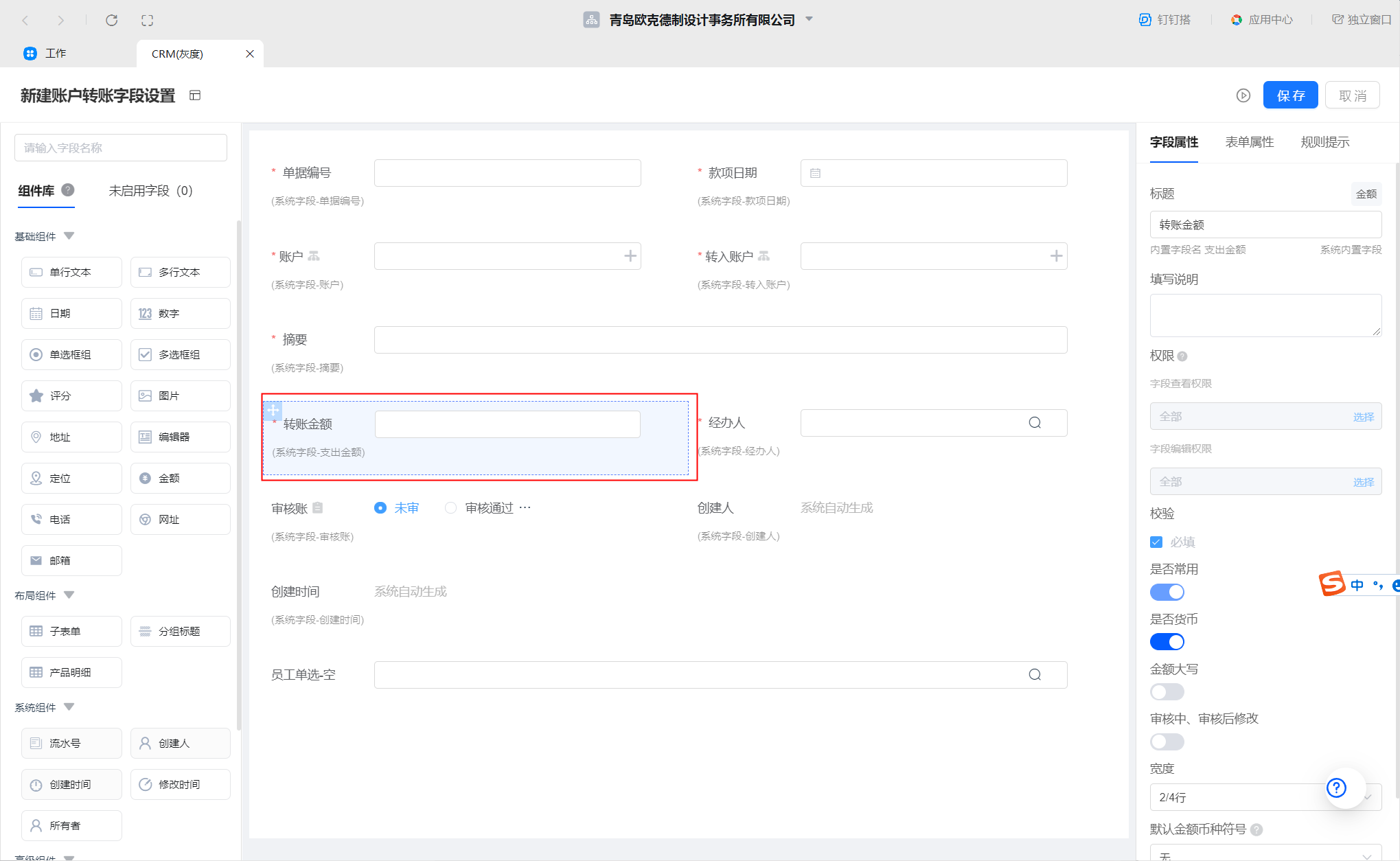 ① PC端设置标签:单据新建页面-表单设置-标签组件启用-右侧属性区进入标签设置,添加标签分组,添加具体标签设置标签颜色。保存形成标签,满足一个单据支持多个不同分组的标签类型。比如客户定性定级定量,则可以设置标签分组,每个分组可添加具体属性,比如客户大中小规模、合作标的额的大中小、合作意向的高中低等。