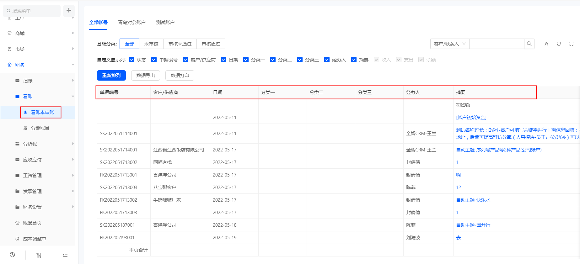 看账审核账“日期”字段支持排序,保持和其他列表列升降序排序规则一样。