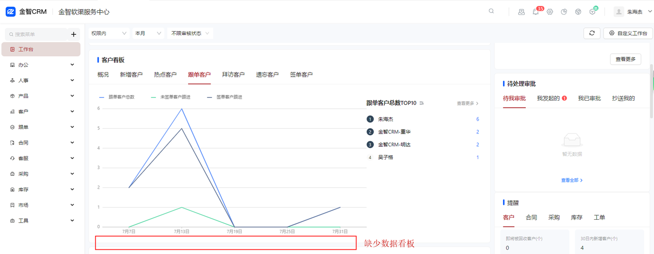 热点客户、新增客户、跟单客户、遗忘客户、拜访客户、签单客户增加摘要数据看。下面没有摘要数据看板,增加下,方便看的更直观。
