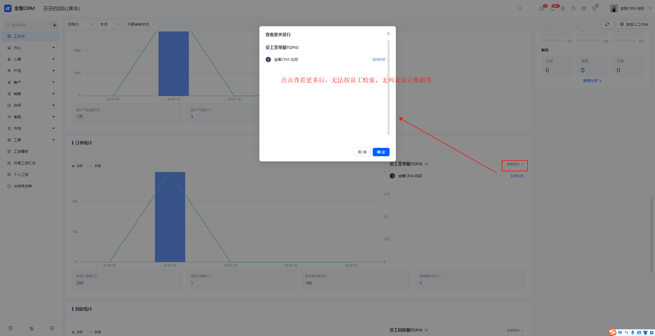 工作台金额类的统计:订单统计、回款统计、费用统计、产品分析、退款统计等金额类统计(排除数量类统计),增加金额单位可选,支持:默认值(现在的混合显示模式)、元、万元、百万、亿元,进行切换换算显示。