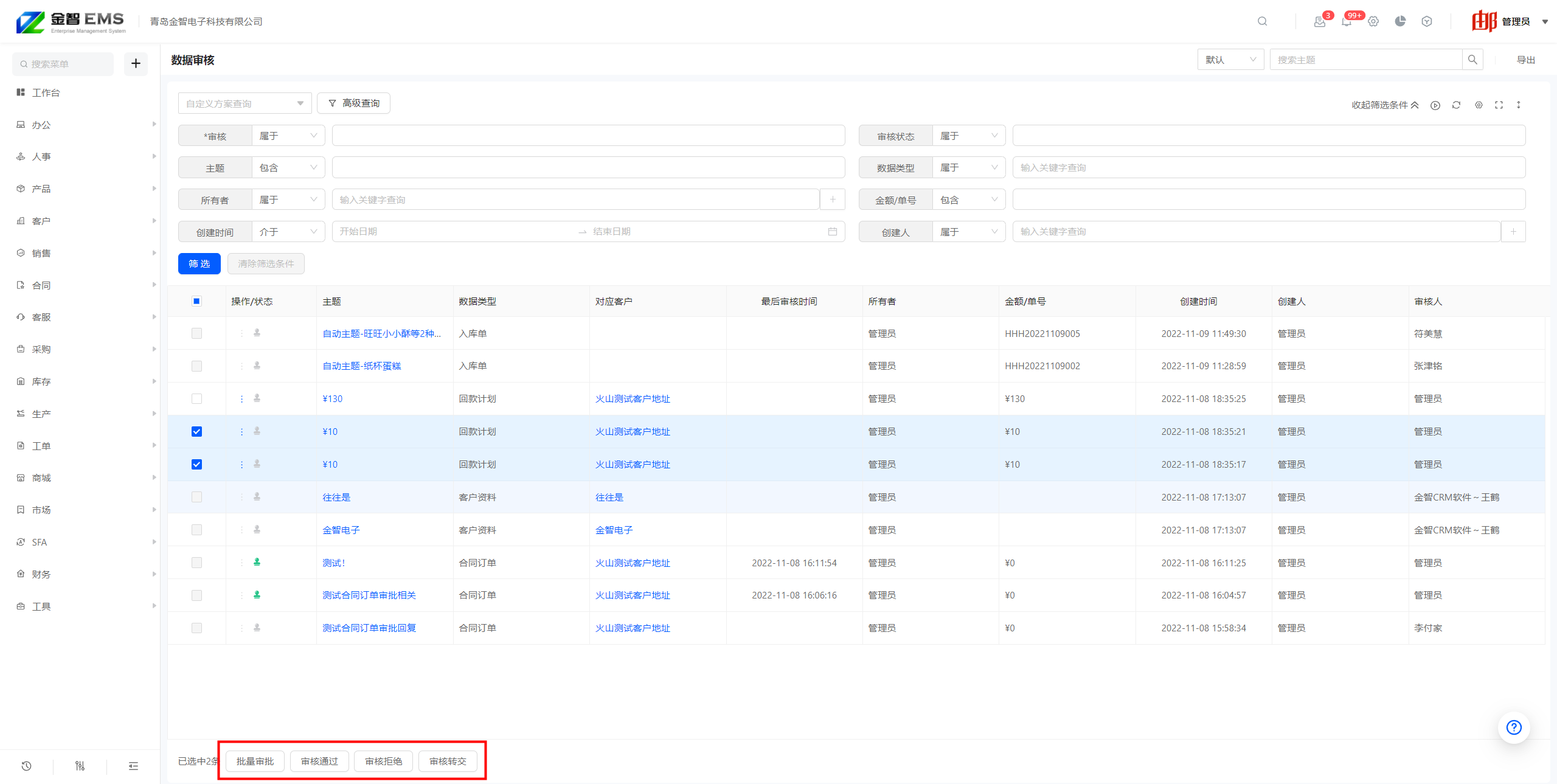 (1)增加批量操作项,可批量对单据进行审核,通过、拒绝、转交;