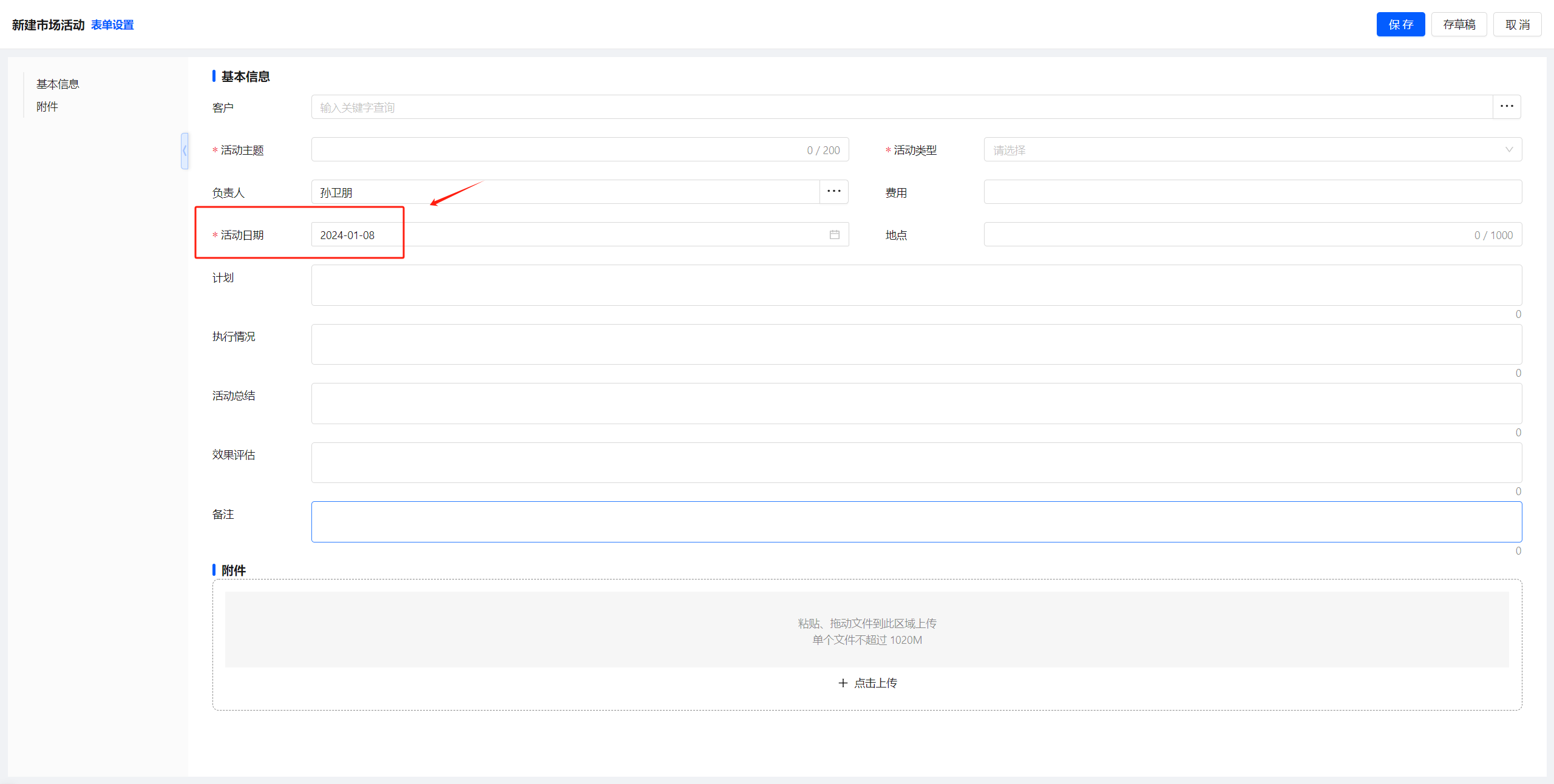 市场活动-活动日期字段,从时间格式(2024-1-1 18:00)改为日期格式(2024-1-1)