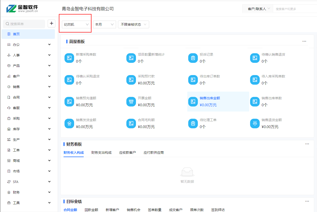 查看考核目标页面,左侧增加部门组织结构,支持切换查看到部门合计目标数据,单独查看特定某个部门;