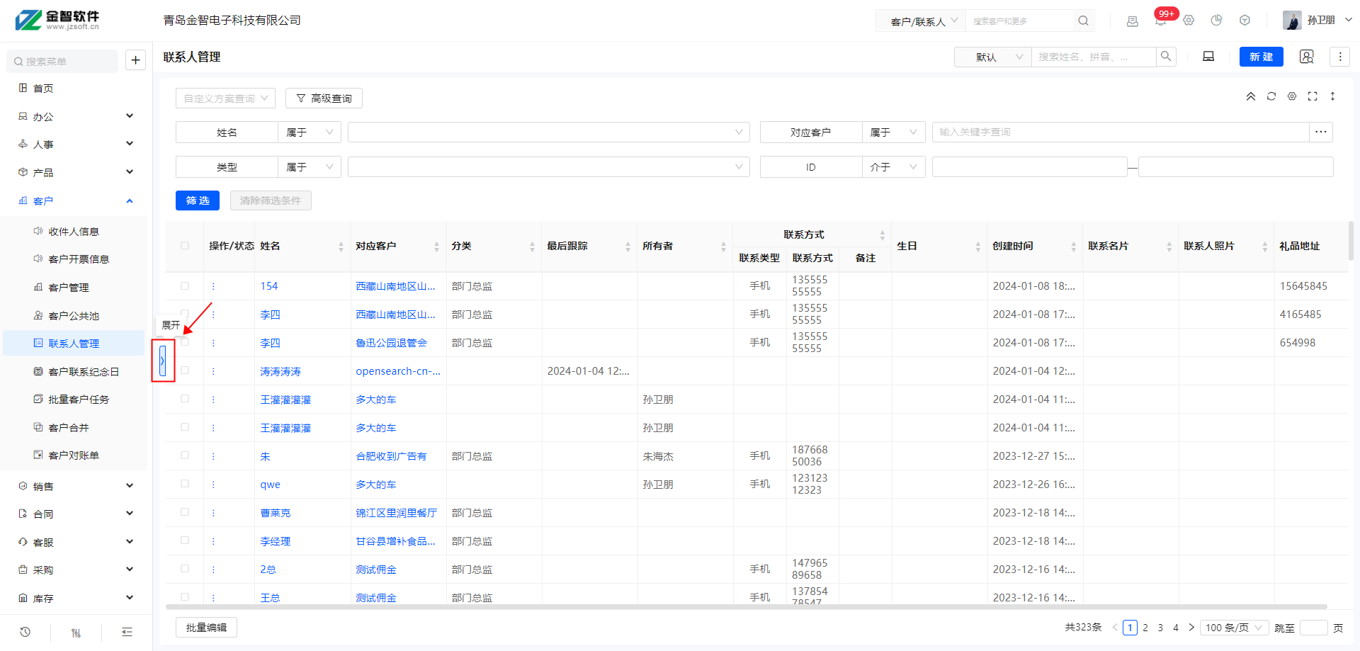 左侧的百家姓查询,增加收起功能,,收起后联系人信息左移,方便显示更多数据。