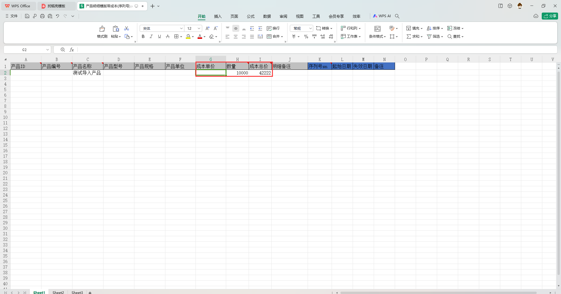 (3)未填写成本总价,但填写了成本单价时:成本总价=成本单价*数量;