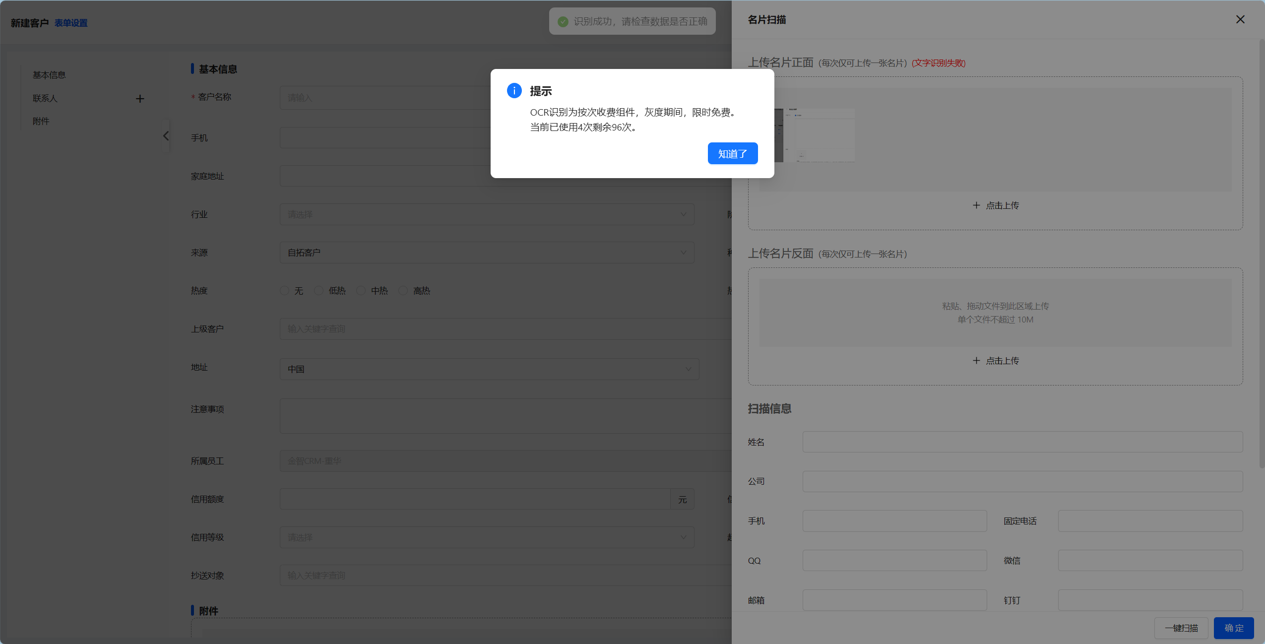 文字识别的提醒,在有充值次数数量的情况下,增加【不再提醒】按钮。