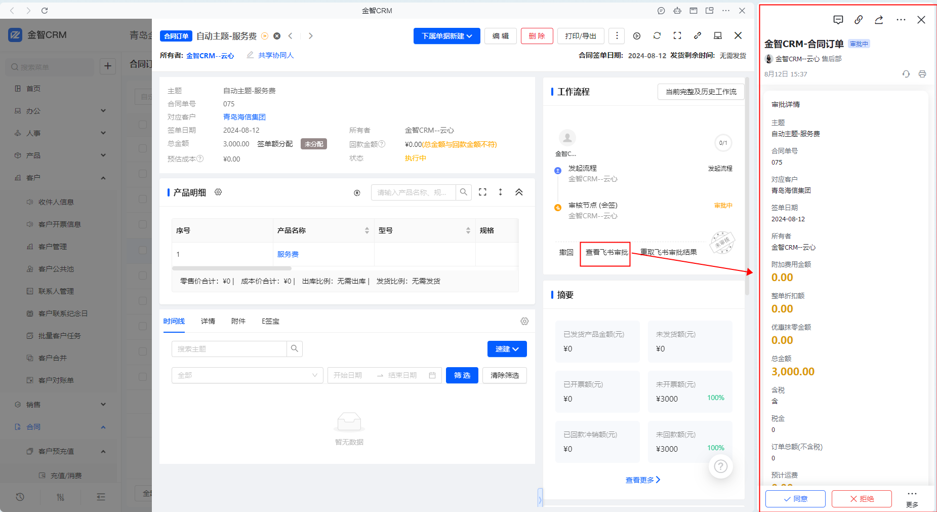 飞书版用户,单据审批流程开启对接飞书审核,单据视图内支持一键点击跳转飞书审核页面。