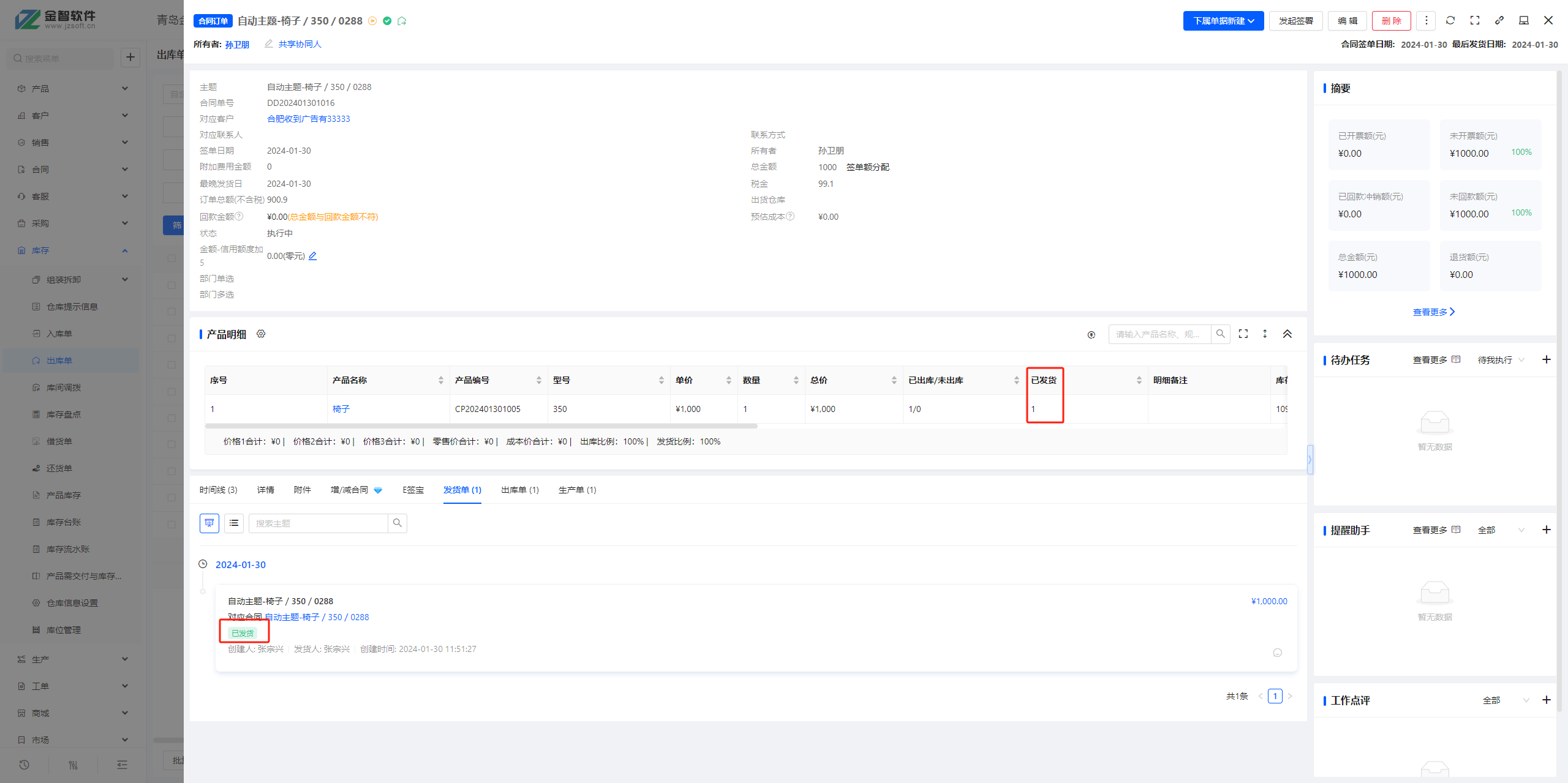 订单下面建立发货单后,出库单列表识别出库产品是否已添加发货单,已发货完成的在出库单列表操作状态栏显示已发货图标。