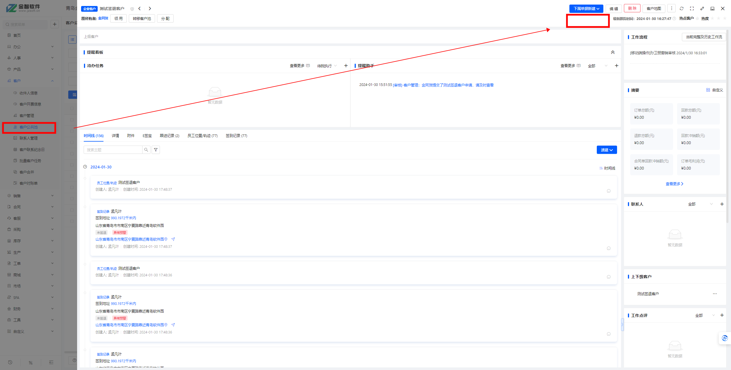 右上角搜索框,搜索客户名称进入后,客户名称列显示蓝色,方便用户理解需点击客户名称进入客户视图