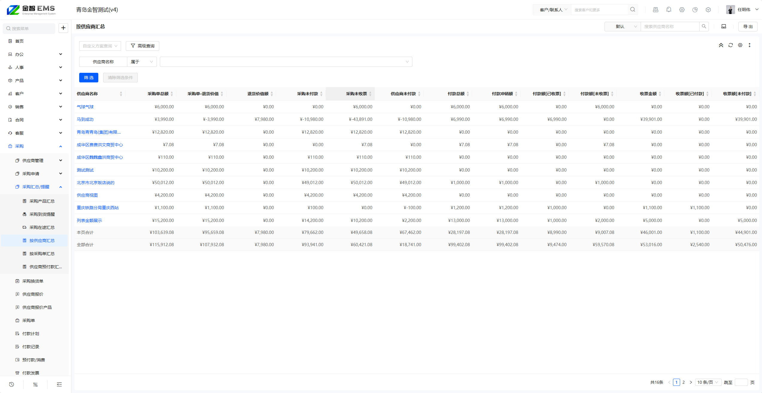 采购汇总提醒-按供应商汇总查询,保留原有的按名称关键字查询的方式,新增加一个“供应商(精确查询)”的查询项,按下拉框的方式出现。