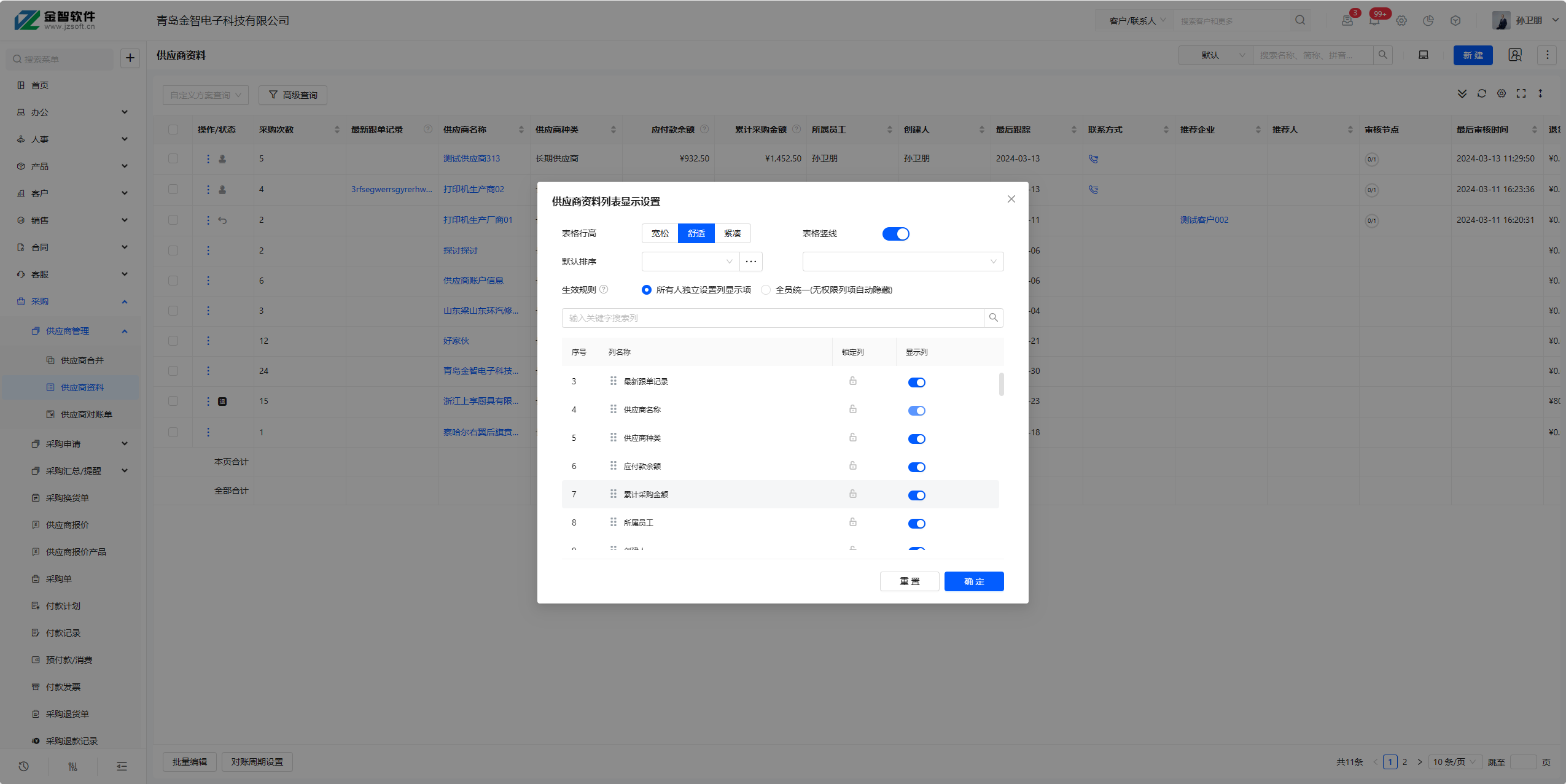 供应商列表,显示列扩充显示项,增加:应付款余额、累计采购单数、累计采购金额,供应商高级查询,也可以查询这些信息。满足按条件筛选查询供应商。