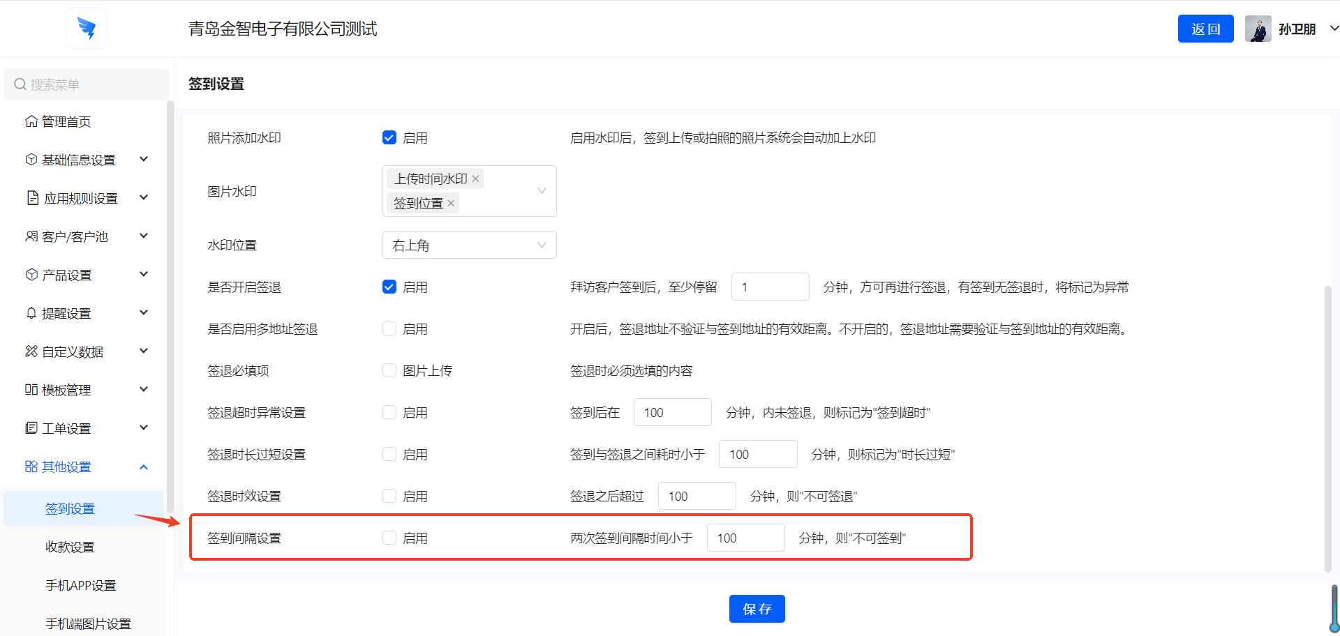 签到设置增加“签到间隔设置”,允许用户自定义设置:两次签到间隔时间小于**分钟,则"不可签到"。