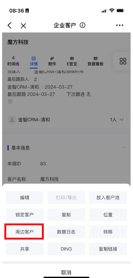 手机端具体客户视图更多操作页面,增加周边客户快捷跳转按钮。