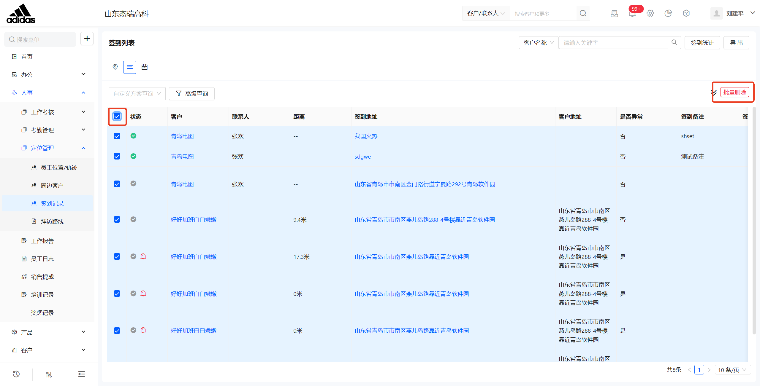 1.1 签到记录,员工轨迹增加批量删除按钮。