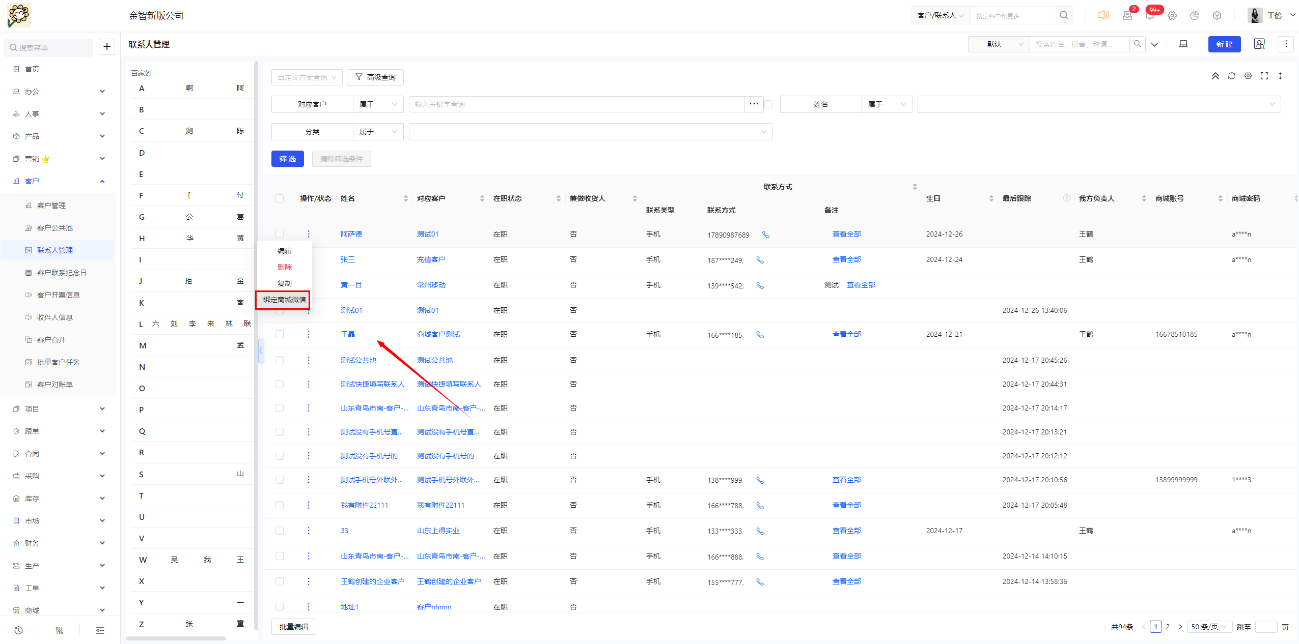 商城登录人登录账号是否绑定微信登录,CRM系统后台通过联系人信息页面可以查看。