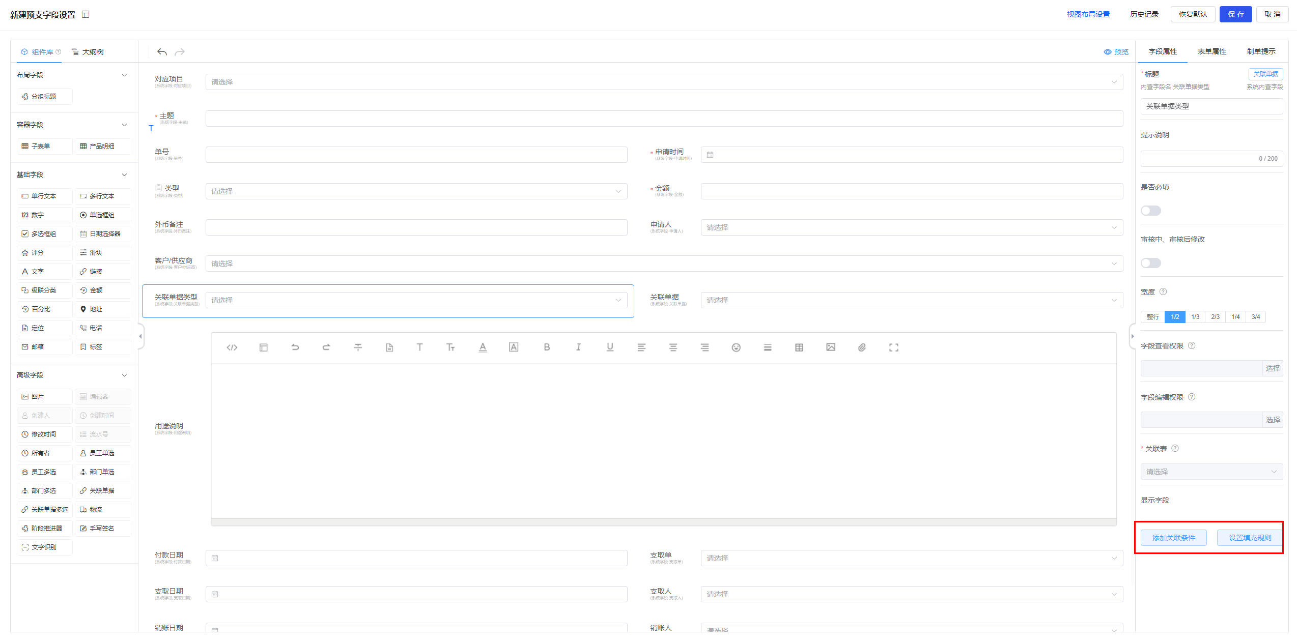 子表单和自定义表单,关联单据支持浏览选择。