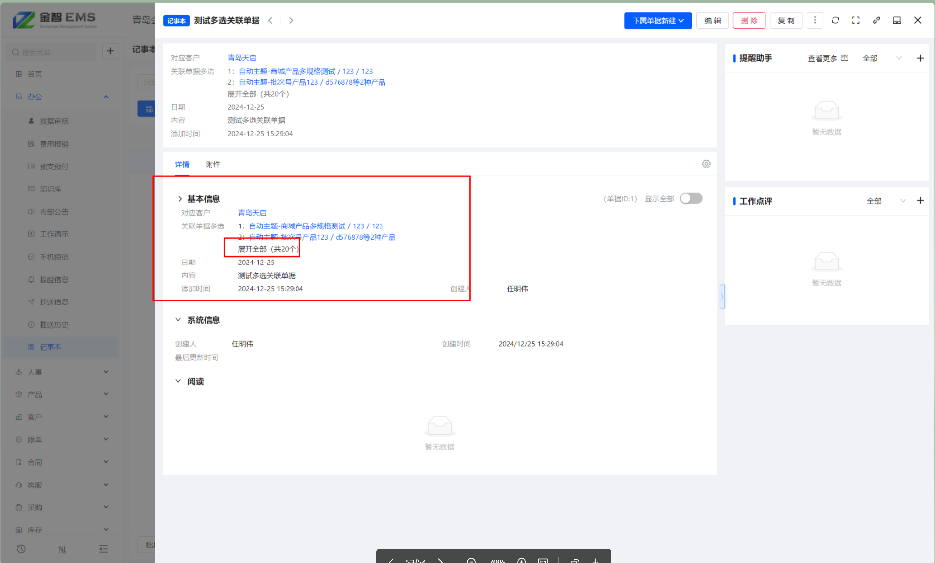 设置多选类型关联单据,不再全部展开,默认展示前两个,点击查看更多,关联单据显示改为一行一个单据,不再混合排列显示所有关联单据。