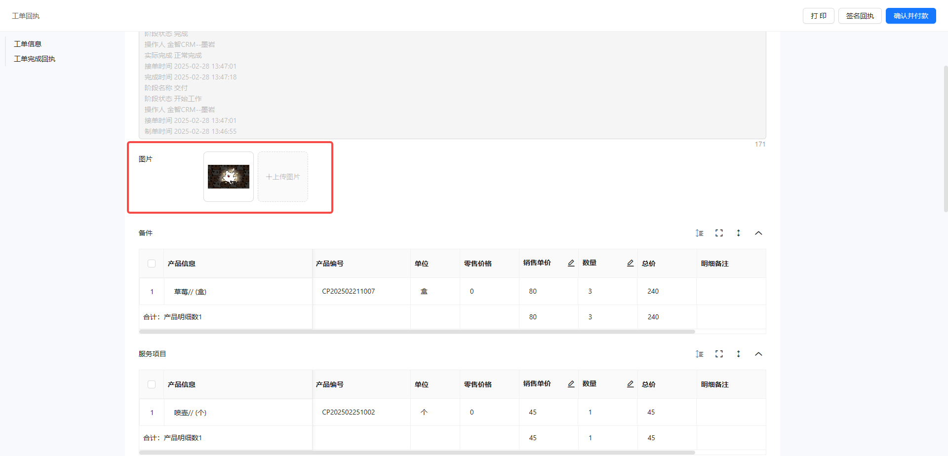 (4)工单回执客户端,备件与服务项目明细中销售单价、数量取消批量编辑按钮,此处无需顾客编辑。