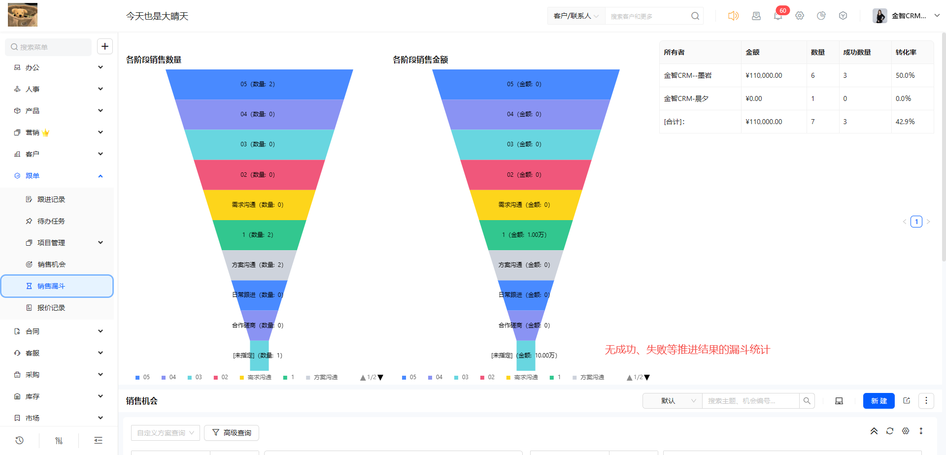3.3 销售漏斗:漏斗中增加成功,失败,失效的数量;项目漏斗:漏斗中增加成功,失败,失效的数量。