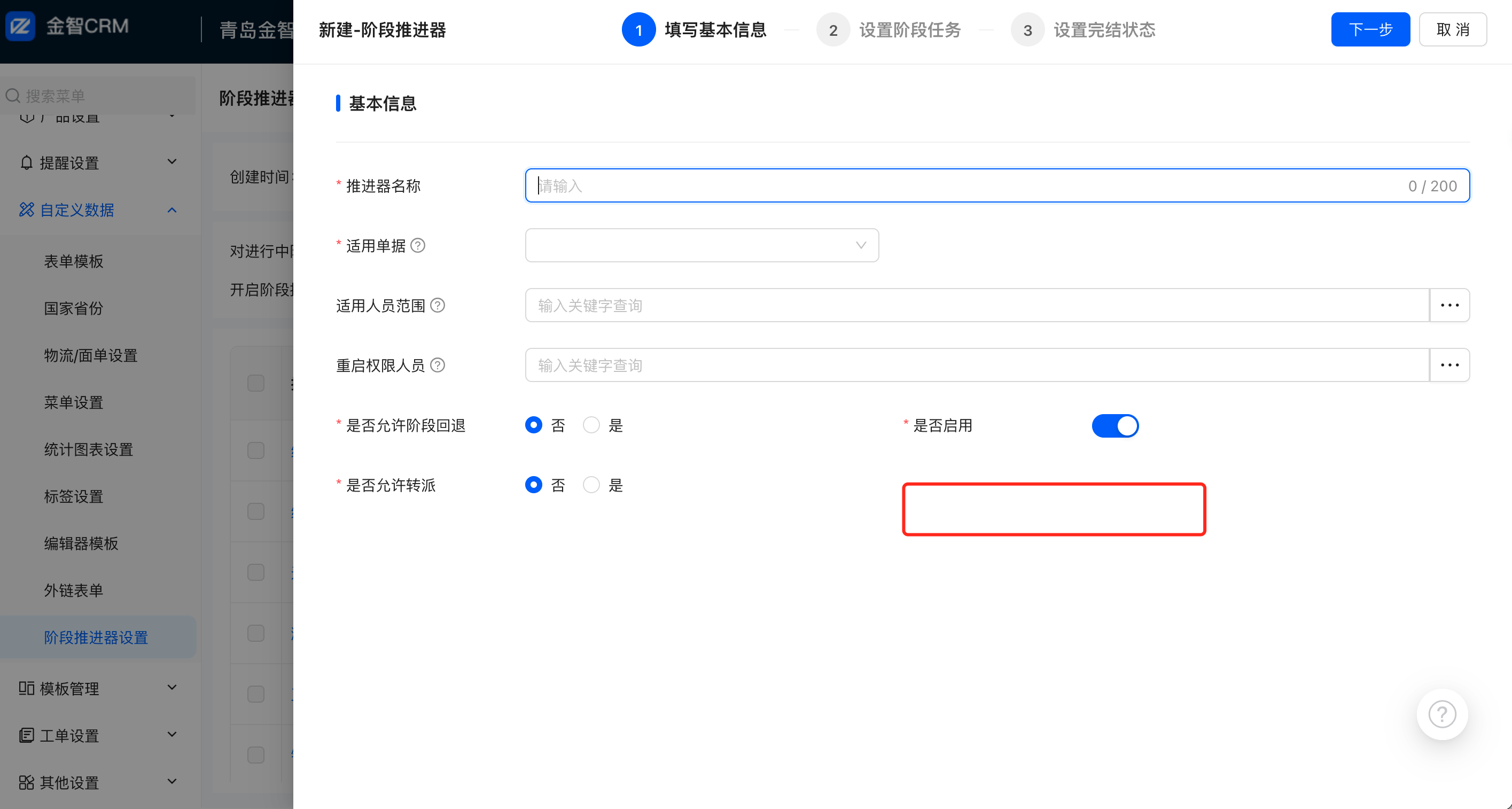 2.1 自定义数据-阶段推进器设置-增加控制选项:是否同步形成跟进记录