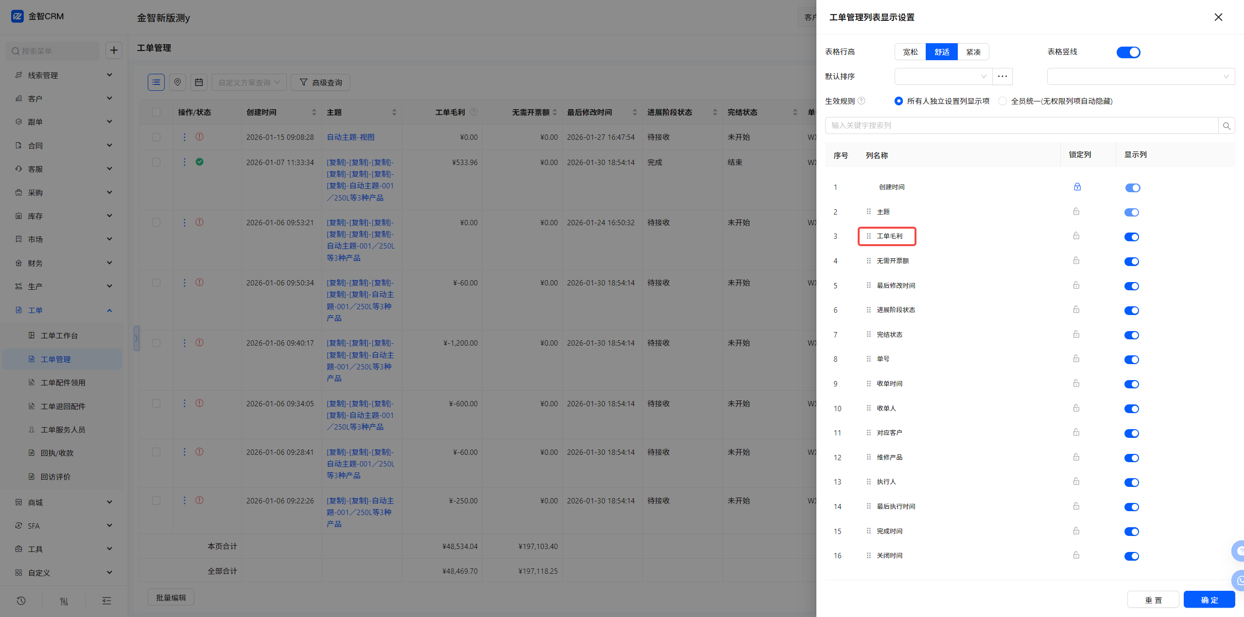 7.1 工单管理-列设置-新增展示列-工单毛利