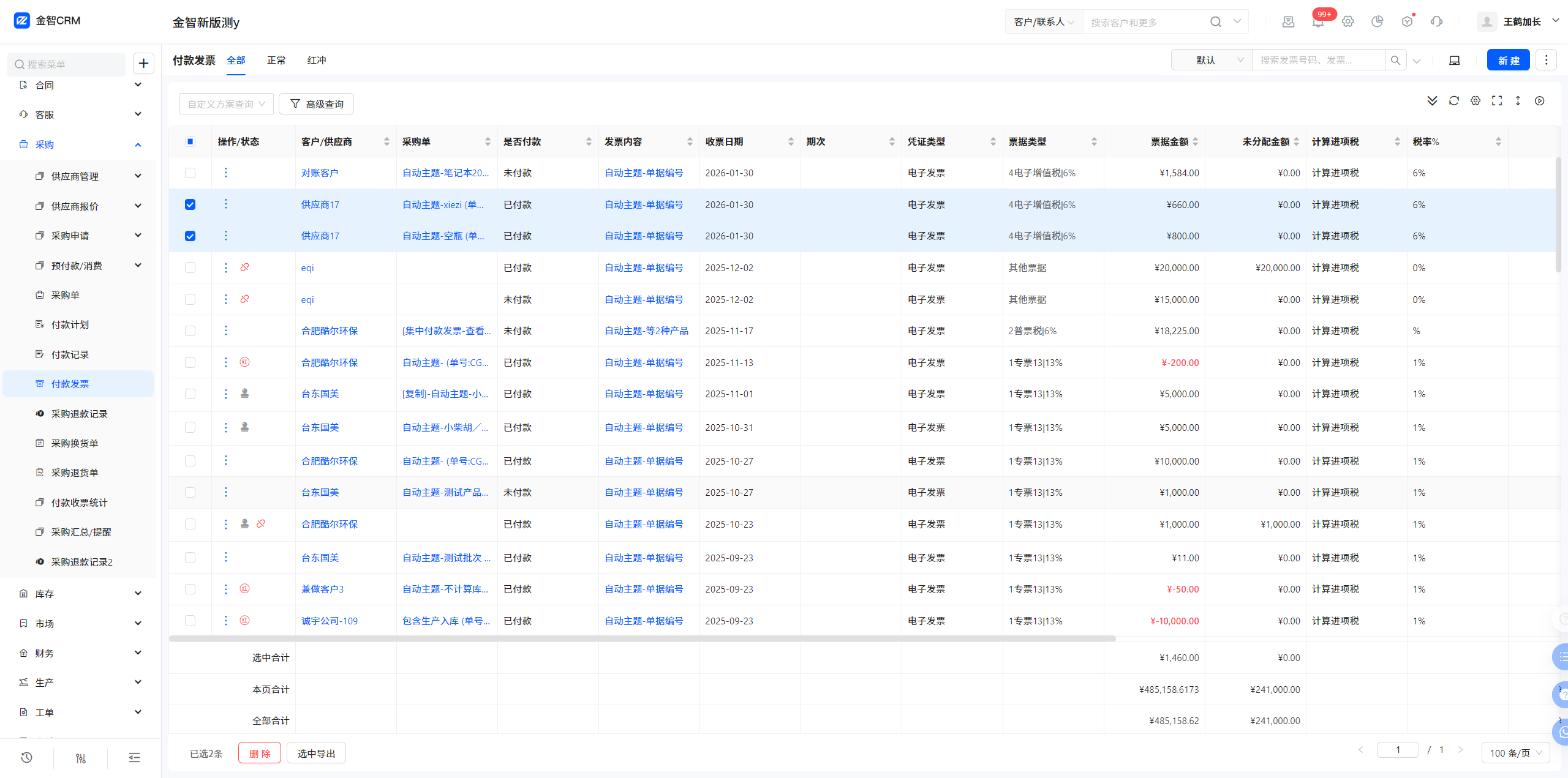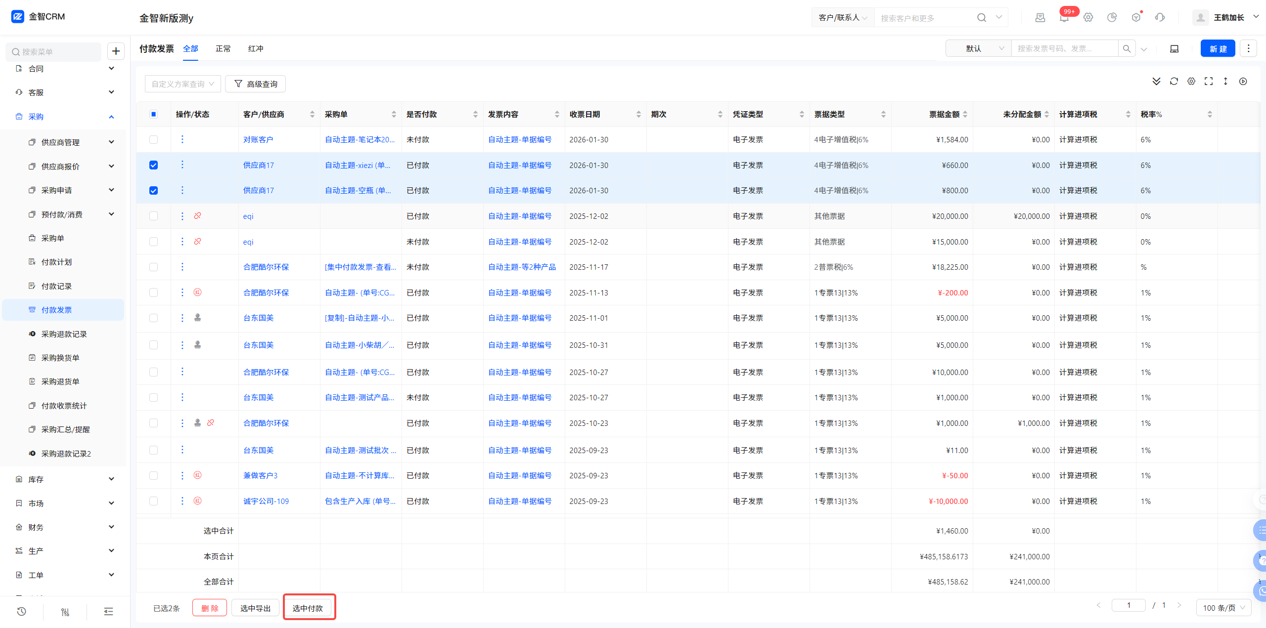 8.1 付款发票-发票列表-增加选中付款功能