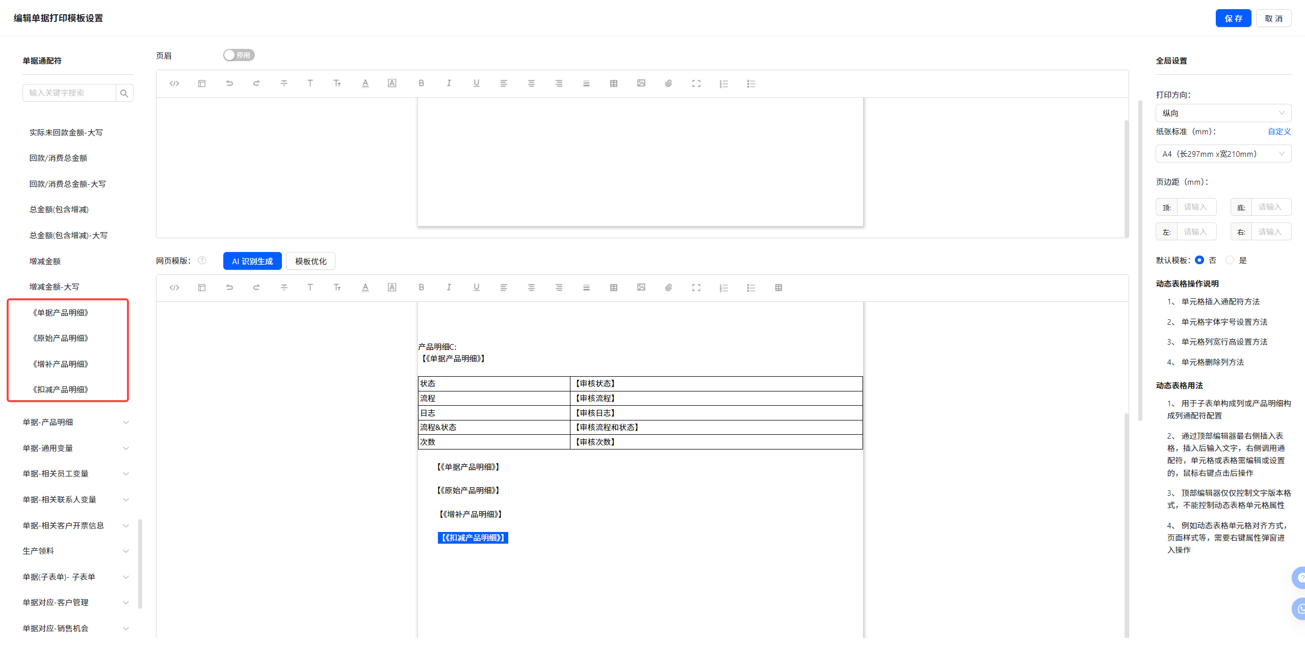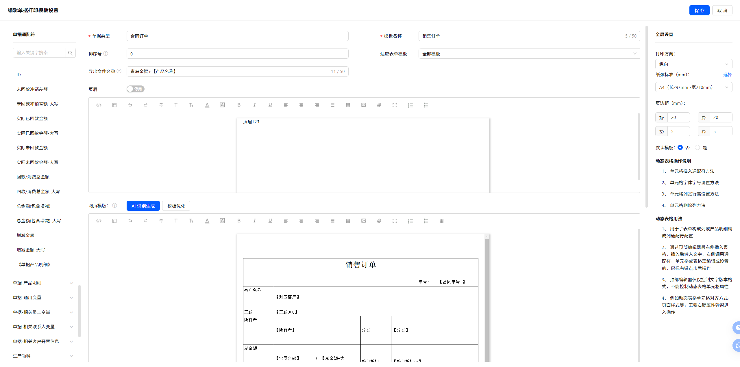 单据打印模板设置