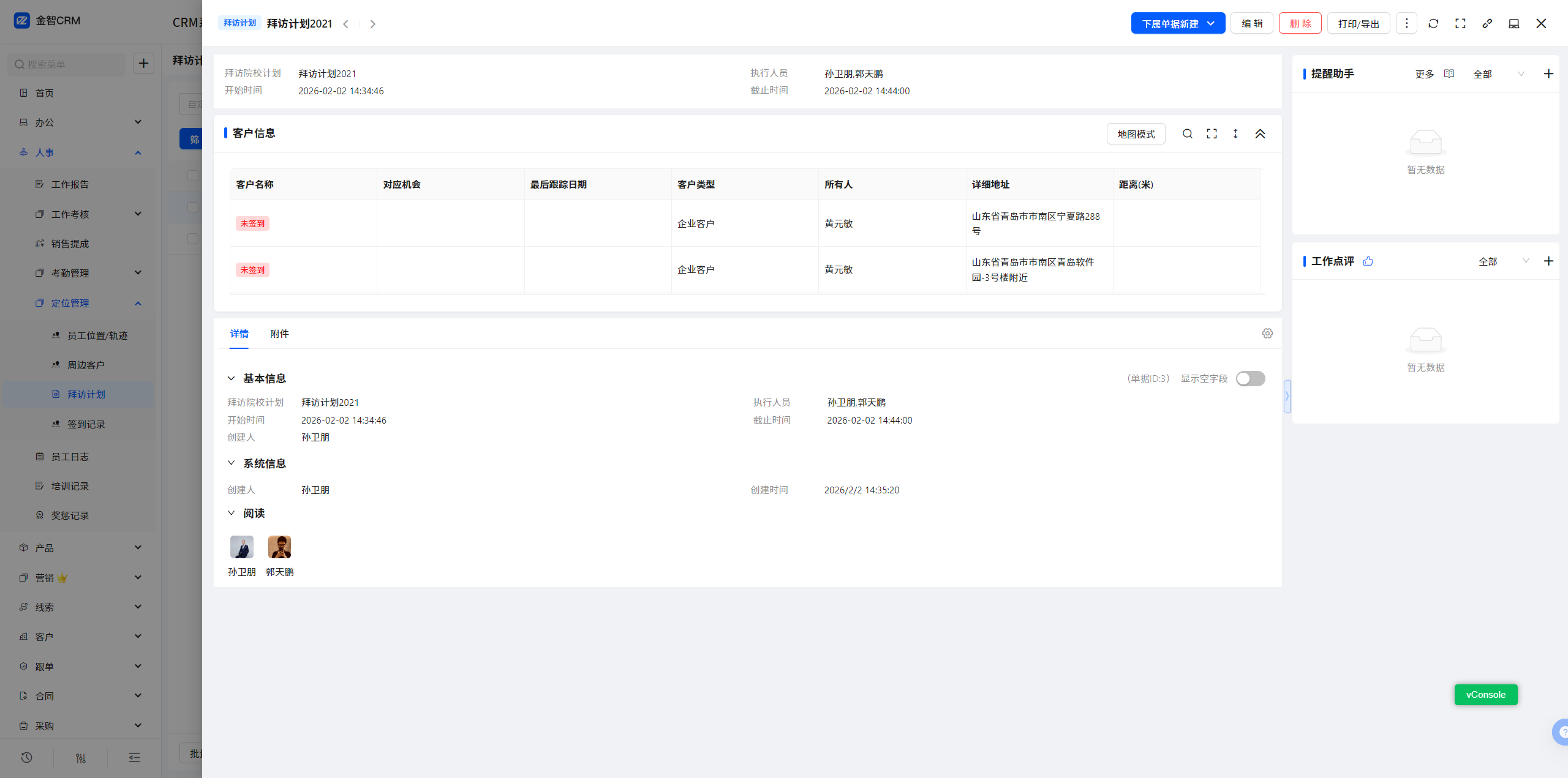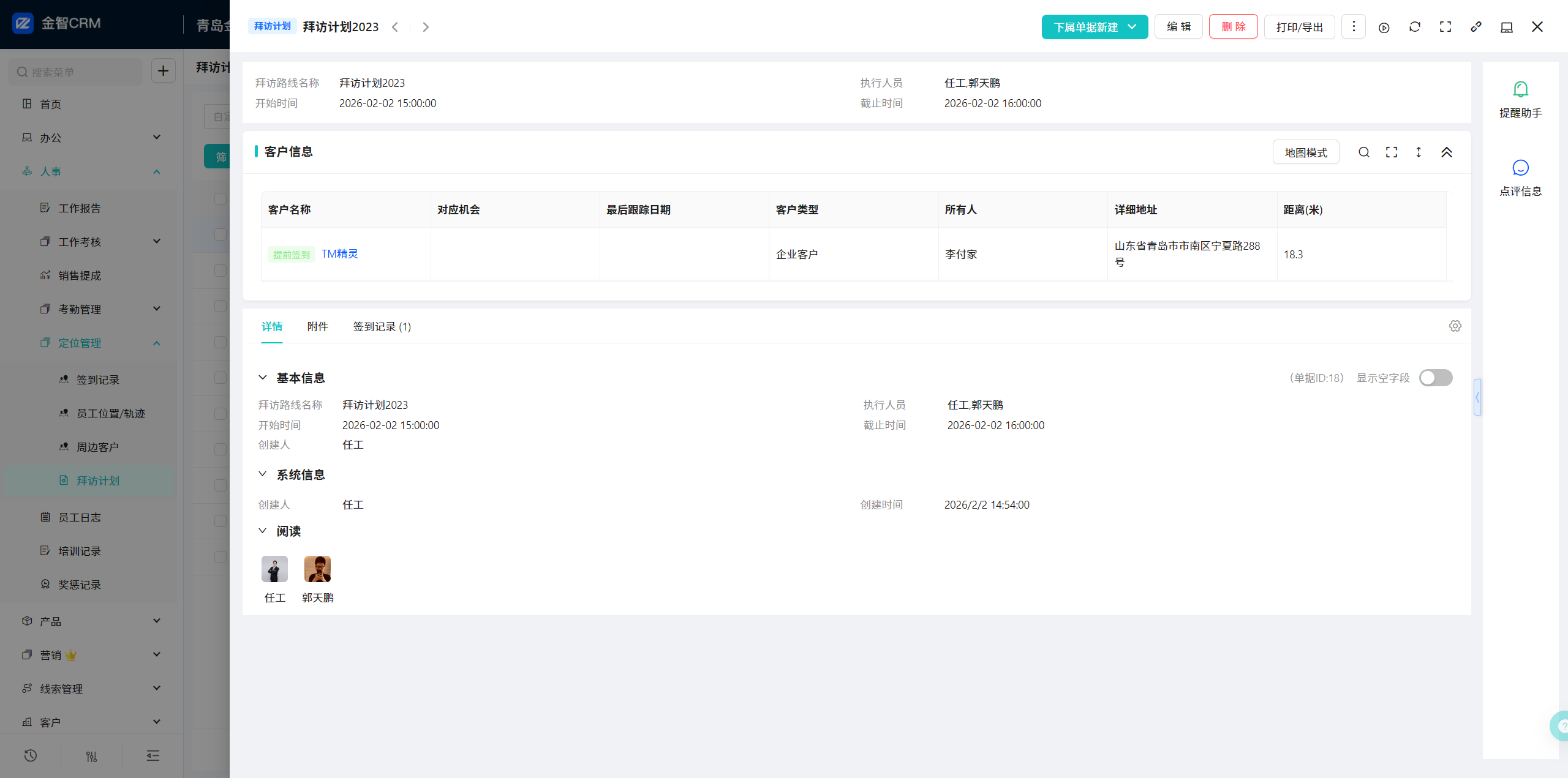 9.2 拜访计划-单据视图-客户信息明细列表-新增签到状态:正常签到、提前签到、逾期签到、未签到