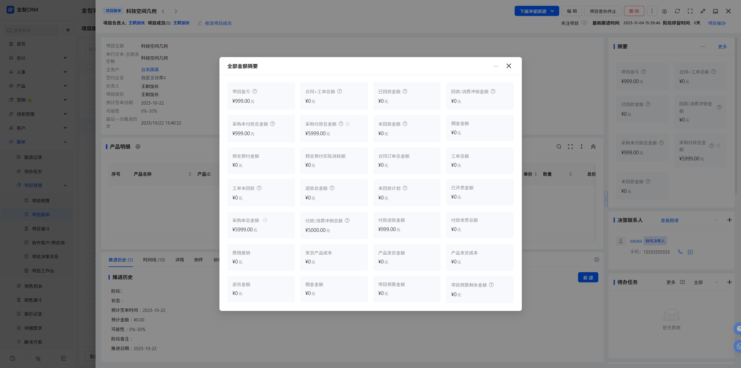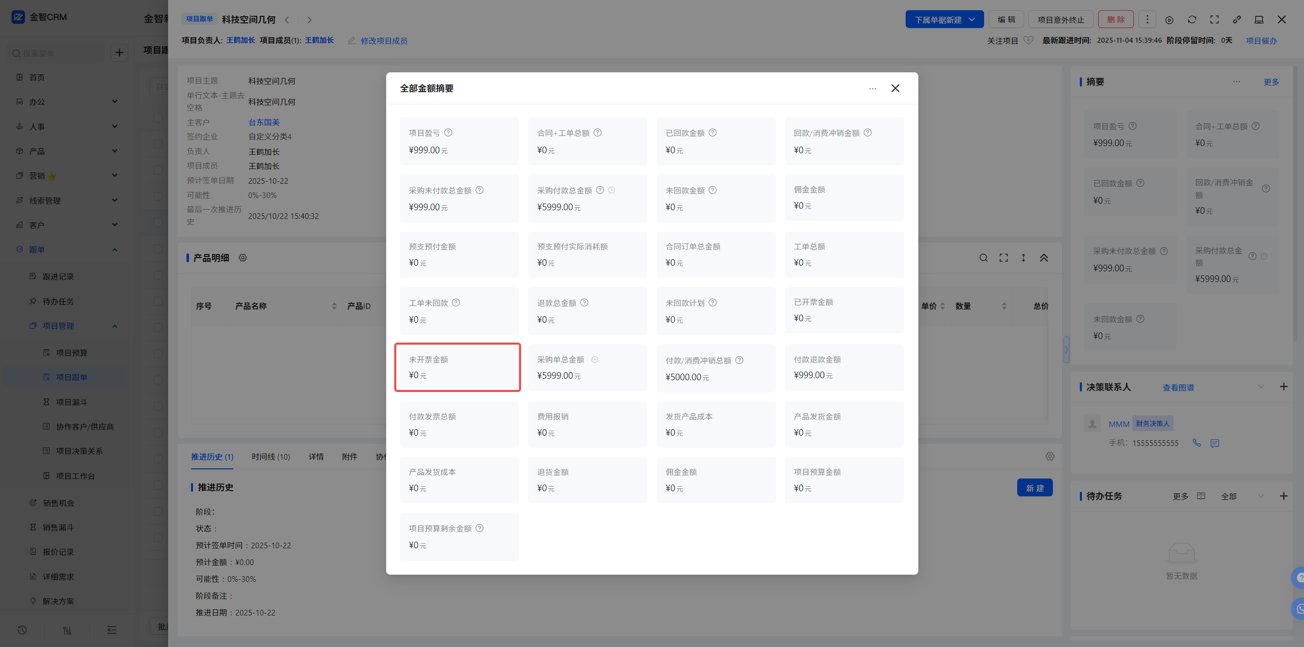 2.2 项目跟单-单据视图-摘要-新增未开票额