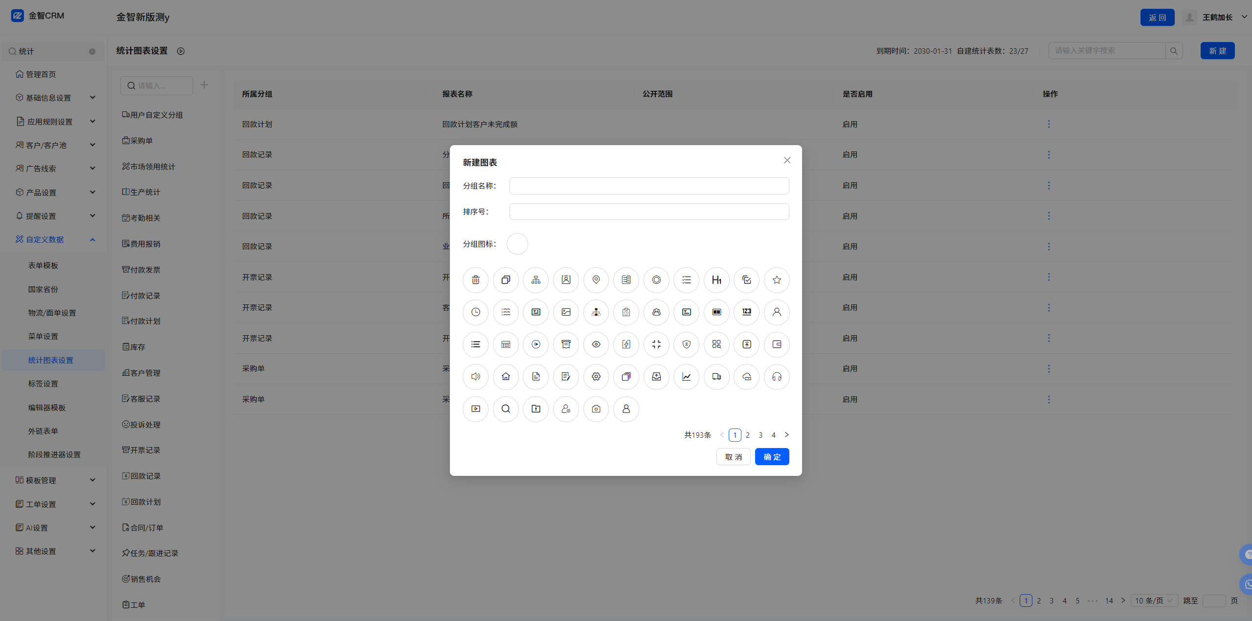 6.1 自定义数据-统计图表设置-左侧快捷菜单栏-新增新建图表分组